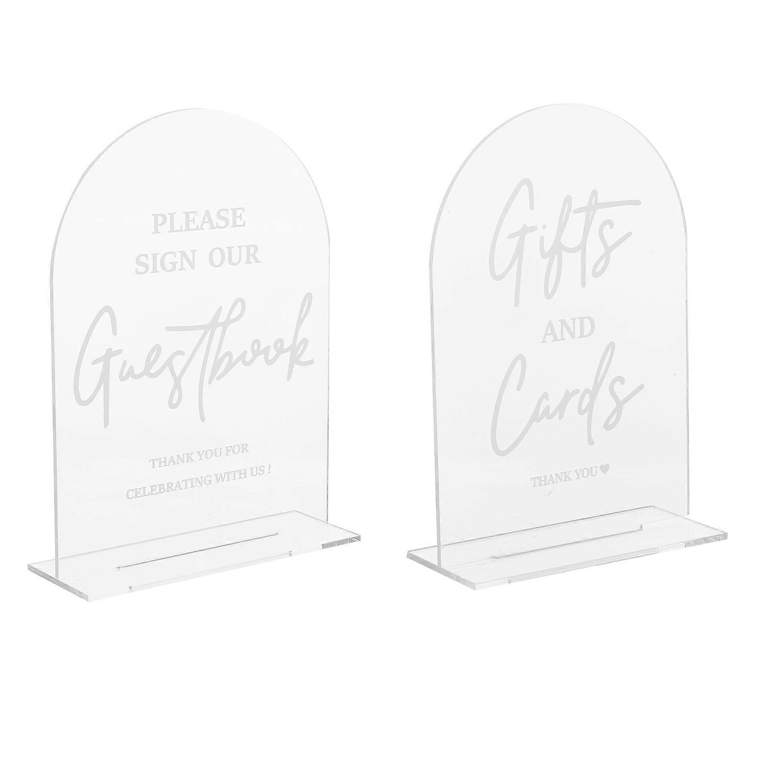 suit for weddings, receptions, and parties, these acrylic signs are both functional and decorative. Their lightweight yet sturdy construction allows for easy placement on tables, while the elegant lettering design options make them a versatile addition to any event theme or style. Features -Color:Transparent -Material:Acrylic -Size:18.00X12.50X5.00cm/7.07X4.91X1.97in -Modern elegance: the transparent acrylic design adds a contemporary and chic element to your wedding or event decor -Clear and stylish text: features beautifully crafted calligraphy that is both functional and decorative, guiding guests with ease -Reusable use: designed for multiple uses, these signs help reduce waste while maintaining their pristine appearance -Adaptable for any event: whether for weddings, corporate meetings, or private parties, these signs complement a wide range of occasions -Reliable stability: the wellbalanced structure make sure the signs stay in place, providing uninterrupted visibility for guests Package list: 2 x Arch Acrylic Wedding Signs