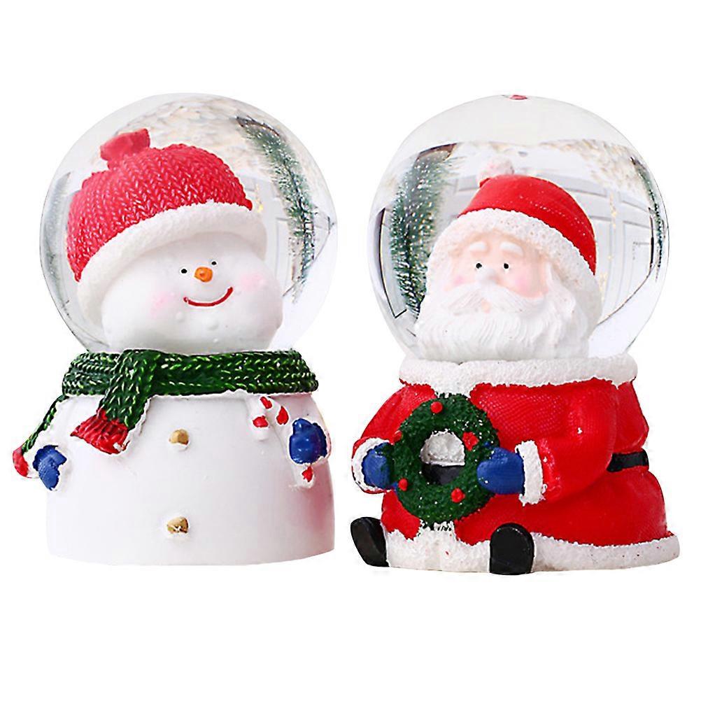 Christmas Snow Crystal Ball Santa Claus for Decor 2Pcs Xmas Table Light