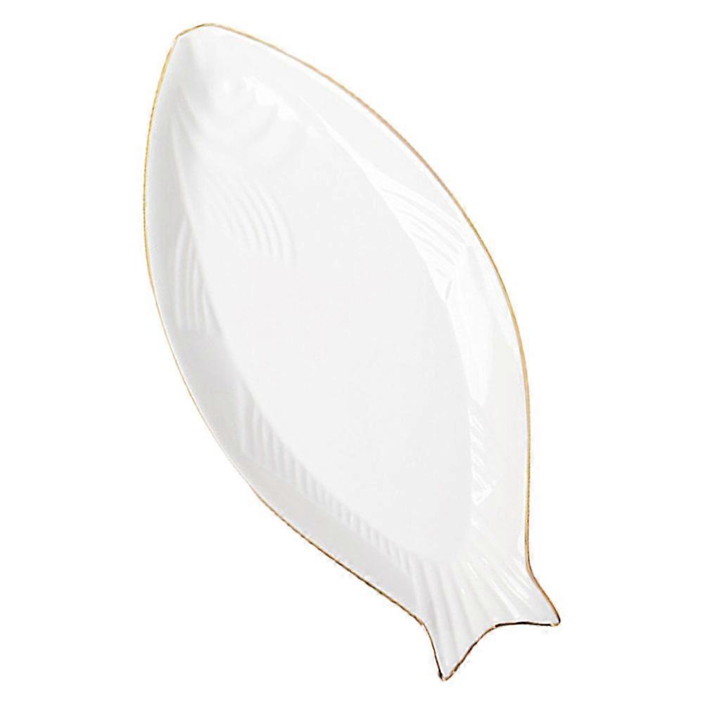 Ceramic Fish Plate for Food Serving White Porcelain Fish Shape Tray
