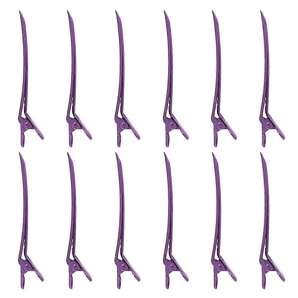 Hair Sectioning Clips for Hair Styling in Purple with 12Pcs Stainless Steel Hairdressing Clamps