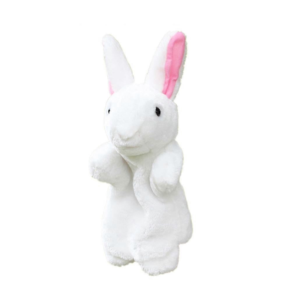 Animal Puppet Rabbit Toy Plush Hand Puppet Role Play Accessory for Parent Child in White 1Pc