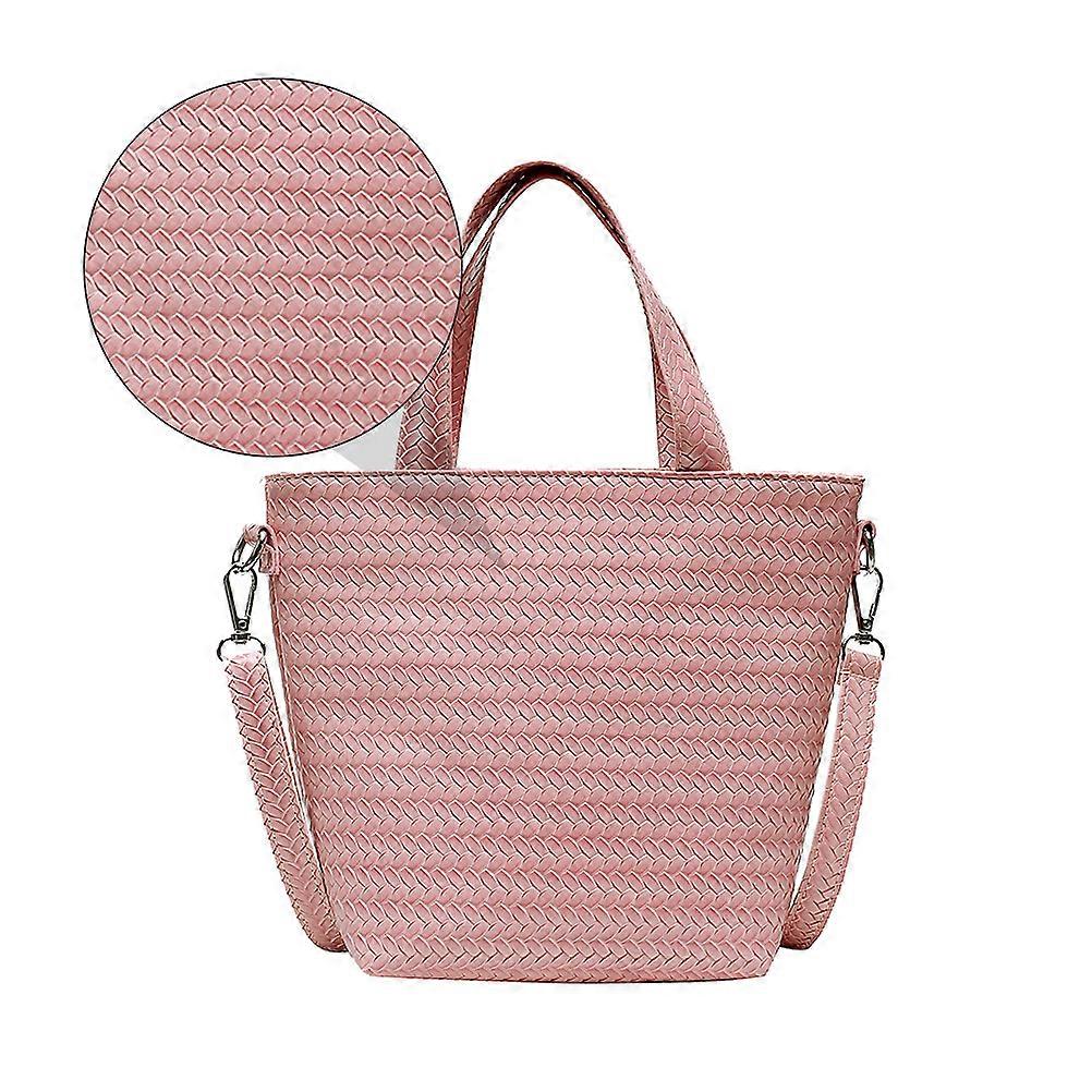 Bucket Shoulder Bag Handbag for Women Girls Ladies 26x10x22cm Pink Woven Crossbody 1Pack