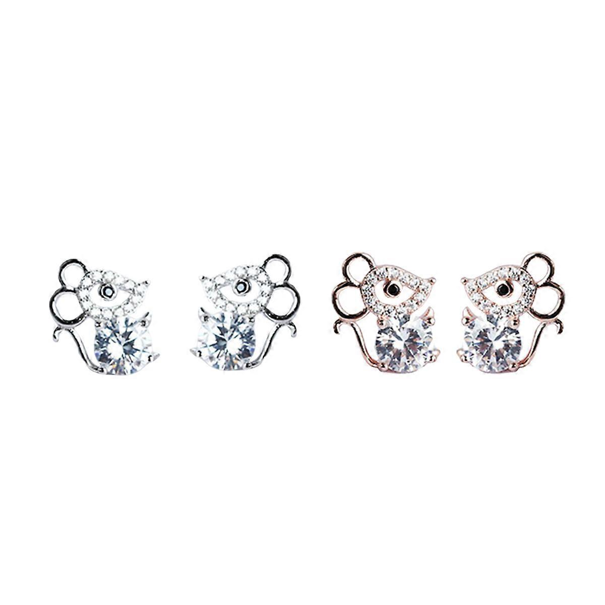 Cute Earrings Small Design Dangle Earrings for Girls Lightweight Jewelry Silver Rhinestone 1 Pair