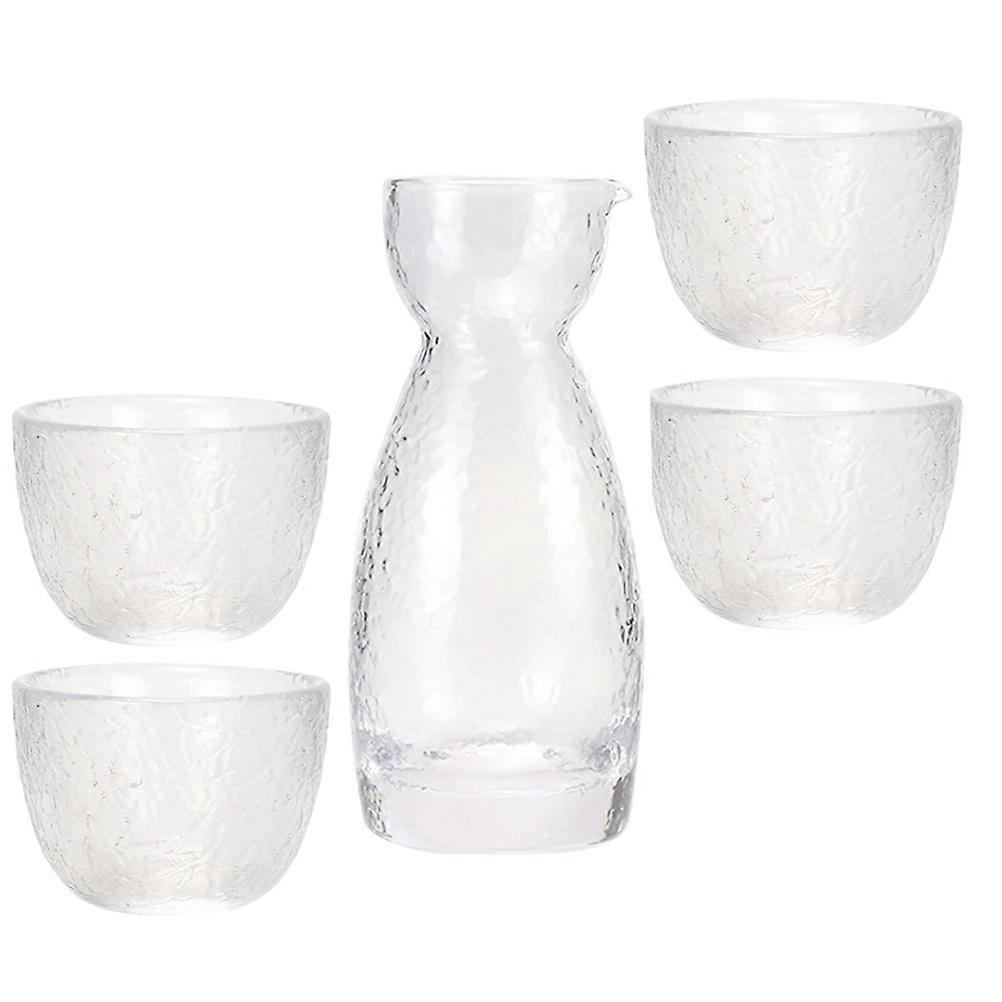 This is creative glass liquor drinking set, made of , wear-resistant and environmentally friendly. Creative strip texture design, and appearance with . This liquor container is and practical. Take them home quickly! Features -Color: Transparent -Material: Glass -Size (Wine Kettle): 12.90X5.10X5.10cm/5.07X2.00X2.00in -Size (Wine Cup): 3.90X5.70X5.70cm/1.53X2.24X2.24in -They are suitable for homes, restaurants, tea houses, hotels and other places. -The outer wall shows irregular concave and convex texture, and the hand feels obvious -Creative strip texture design, the cup edges are smooth, and they feel comfortable. -They can also be used as for your family and friends. -You can enjoy various liquor or beverage with this glass liquor drinking set. Package list: 1 x Wine Kettle 4 x Wine Cups