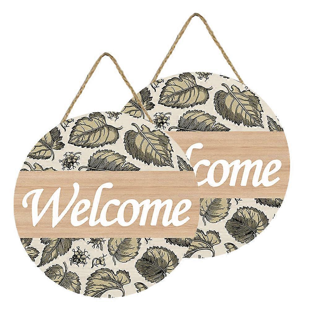 Wooden Hanging Door Sign for Decoration 2Pcs Round Welcome Sign Density Board