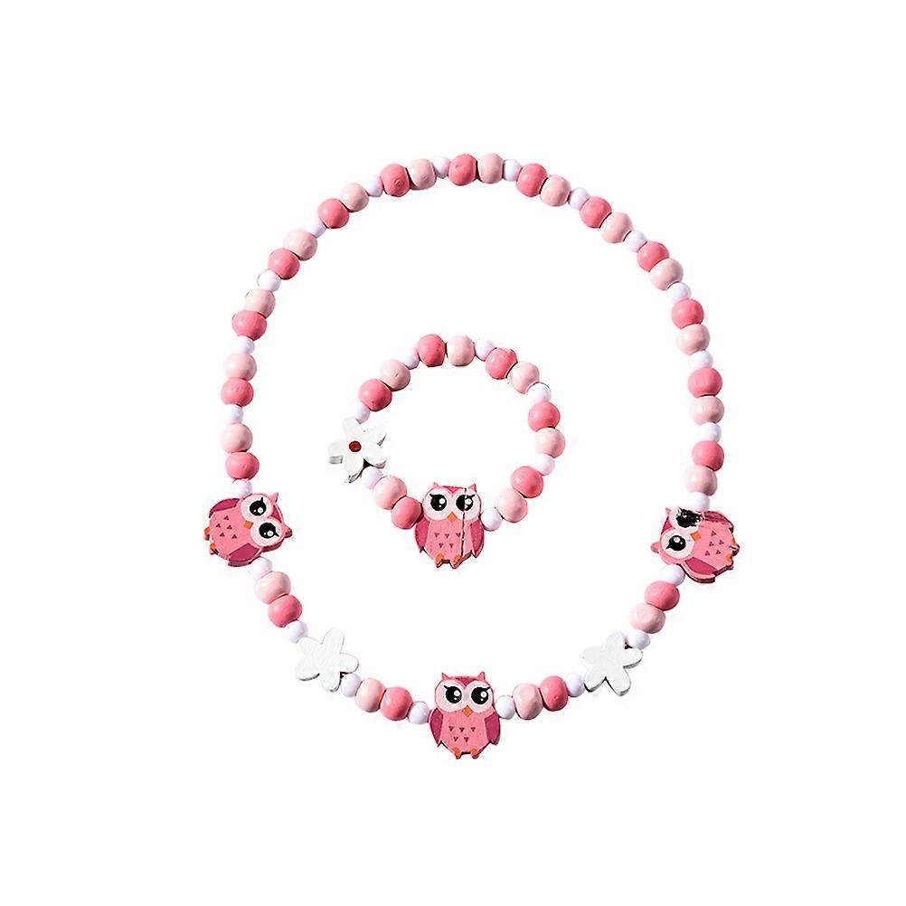 Kids Bracelet and Necklace Wood Jewelry Set for Decoration Pink Animal Style