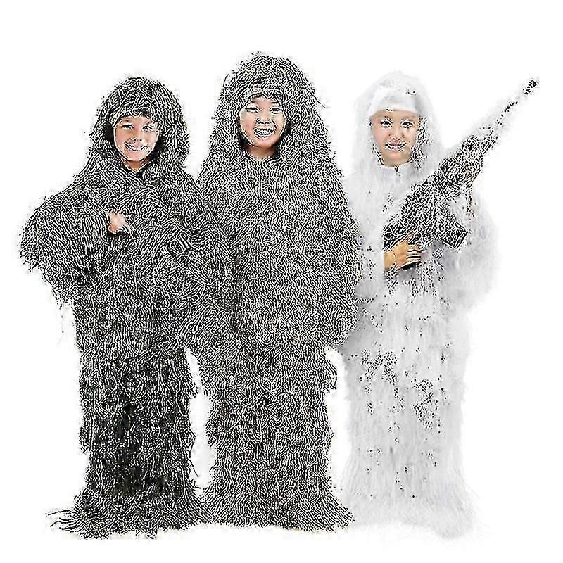 This 3D Camouflage Ghillie Suit, specifically designed for kids, youth, and teens, is the ideal choice for young outdoor enthusiasts.Its core advantage lies in exceptional concealment. The suit is covered with realistic 3D leaf and jute strips that effectively break up the human silhouette, providing superior camouflage in various terrains like forests and grasslands, allowing your child to get closer to nature during hunting or wildlife observation.We understand comfort is paramount for children. That's why we use lightweight, breathable, high-quality fabric to ensure a comfortable feel during outdoor activities, preventing discomfort from overheating. The loose-fitting design allows ample room for movement, and adjustable features at the shoulders and waist accommodate growing kids and different age groups.Durability is also a key feature. Reinforced stitching and tear-resistant fabric enable the suit to withstand minor abrasions in wilderness settings, ready for multiple outdoor adventures.Versatile for various activities, this suit is perfect for hunting practice, paintball games, military simulation, camping, and nature watching. It sparks children's love for the great outdoors while cultivating patience and observation skills. Equip your child with this professional youth hunting camouflage suit and embark on a safe, exciting outdoor adventure!