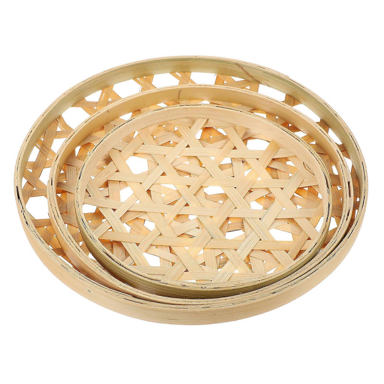 Bamboo Woven Basket Round Food Sieve for Home Use 3Pcs Set