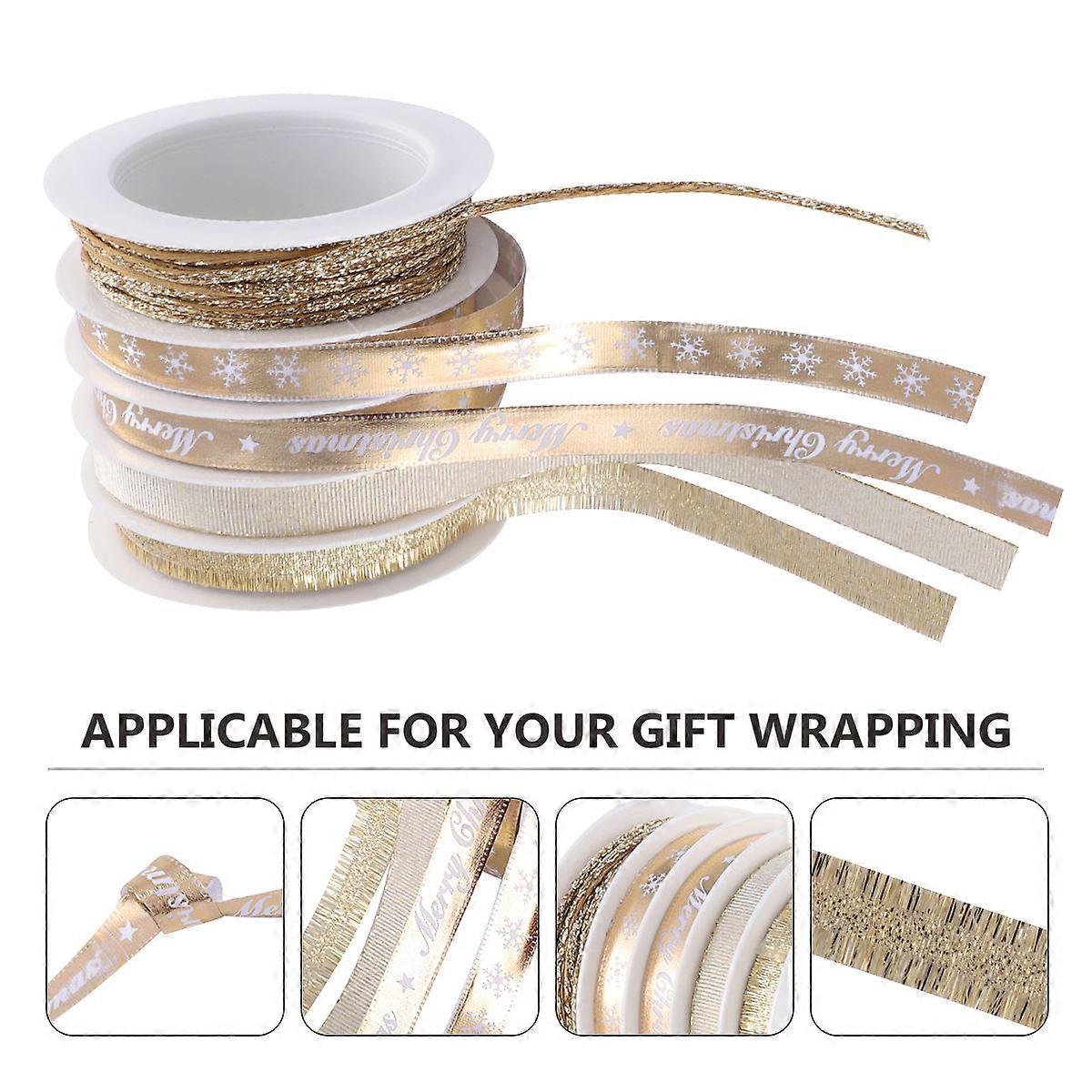 Golden Christmas Ribbon Holiday Gift Decoration Band 5 Rolls Pack