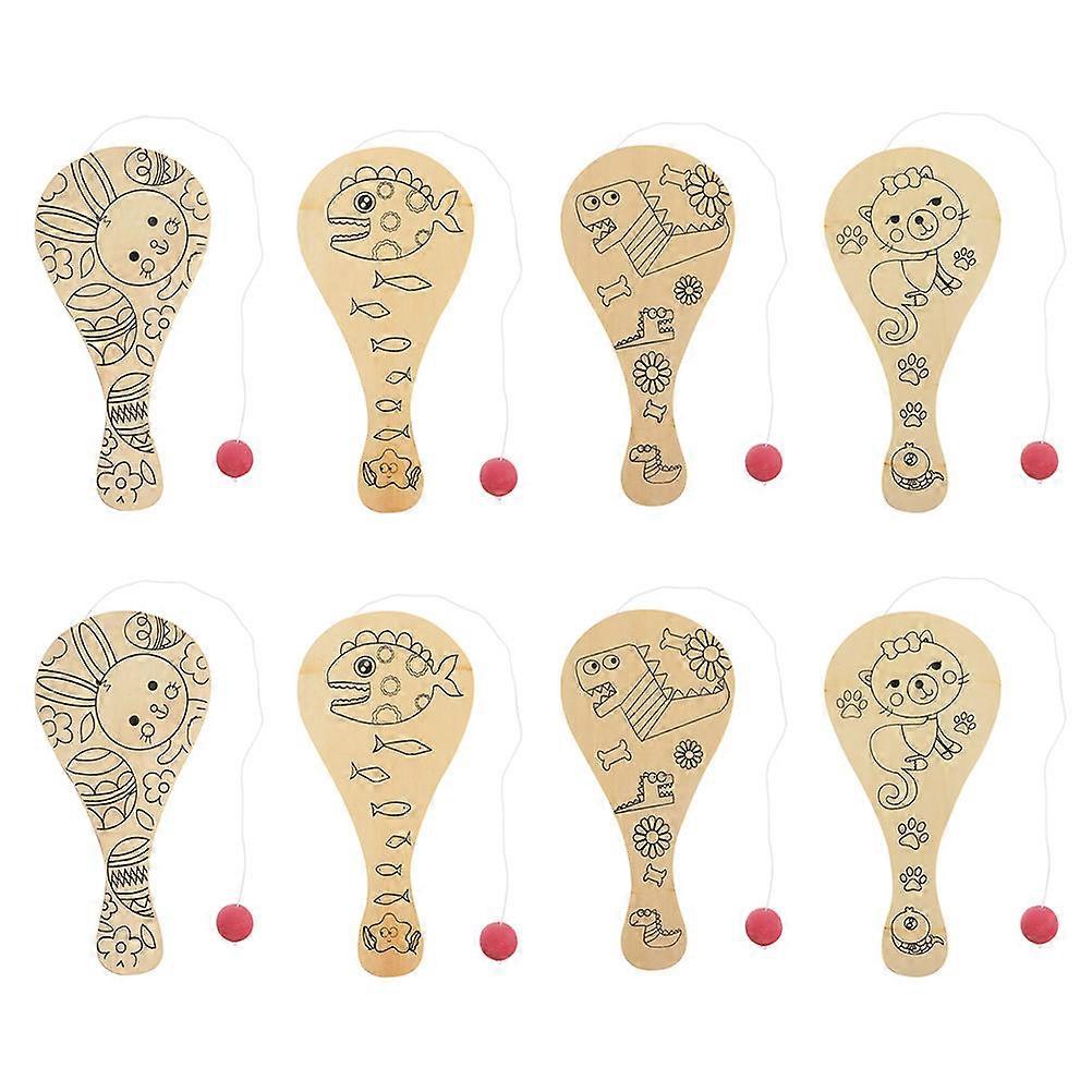 Animal Style Ball Rackets Wooden Crafts for Kids DIY 8Pcs Set