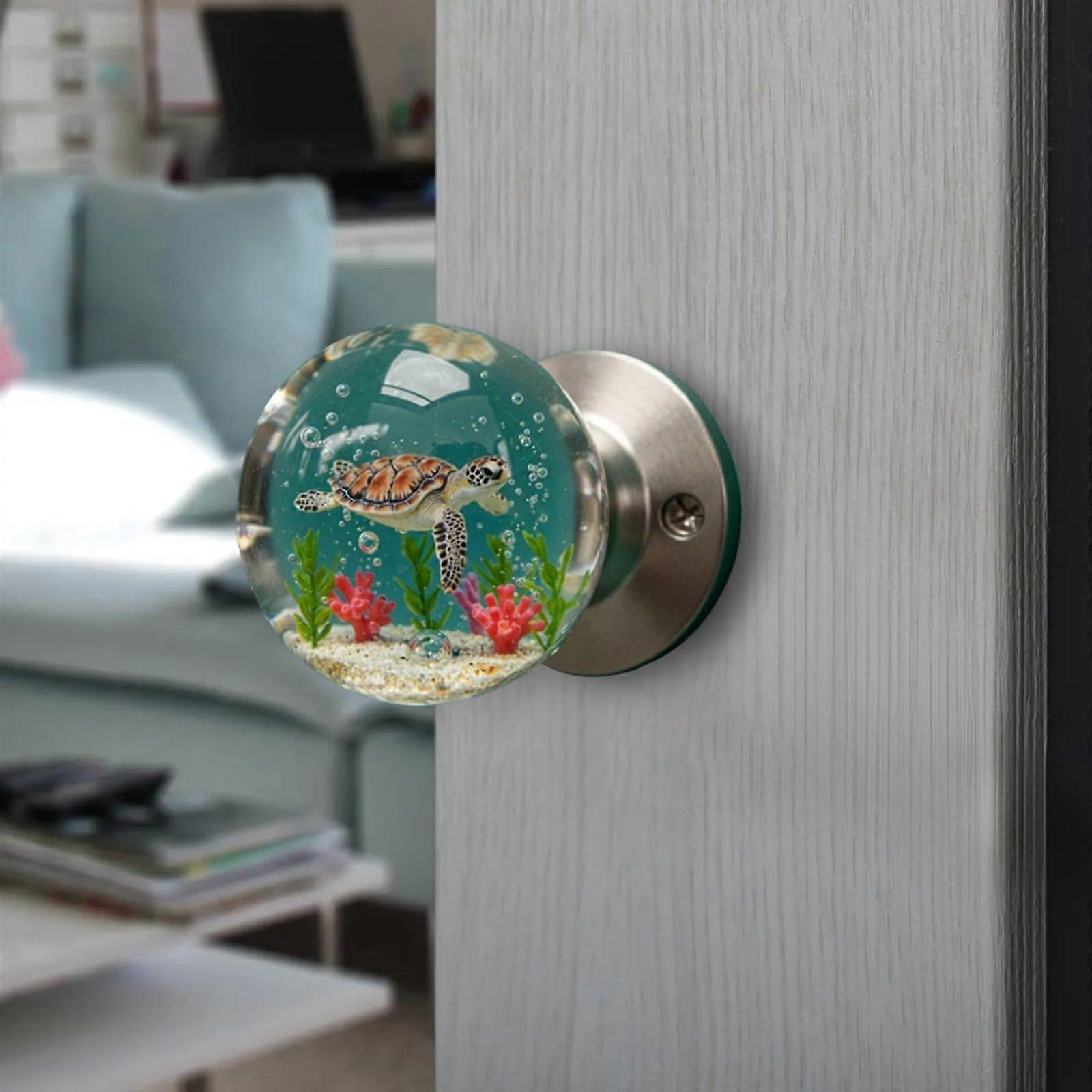 Decorative Door Knob with Vintage Round Resin Design, Floral Animal Turtle Cabinet Pull