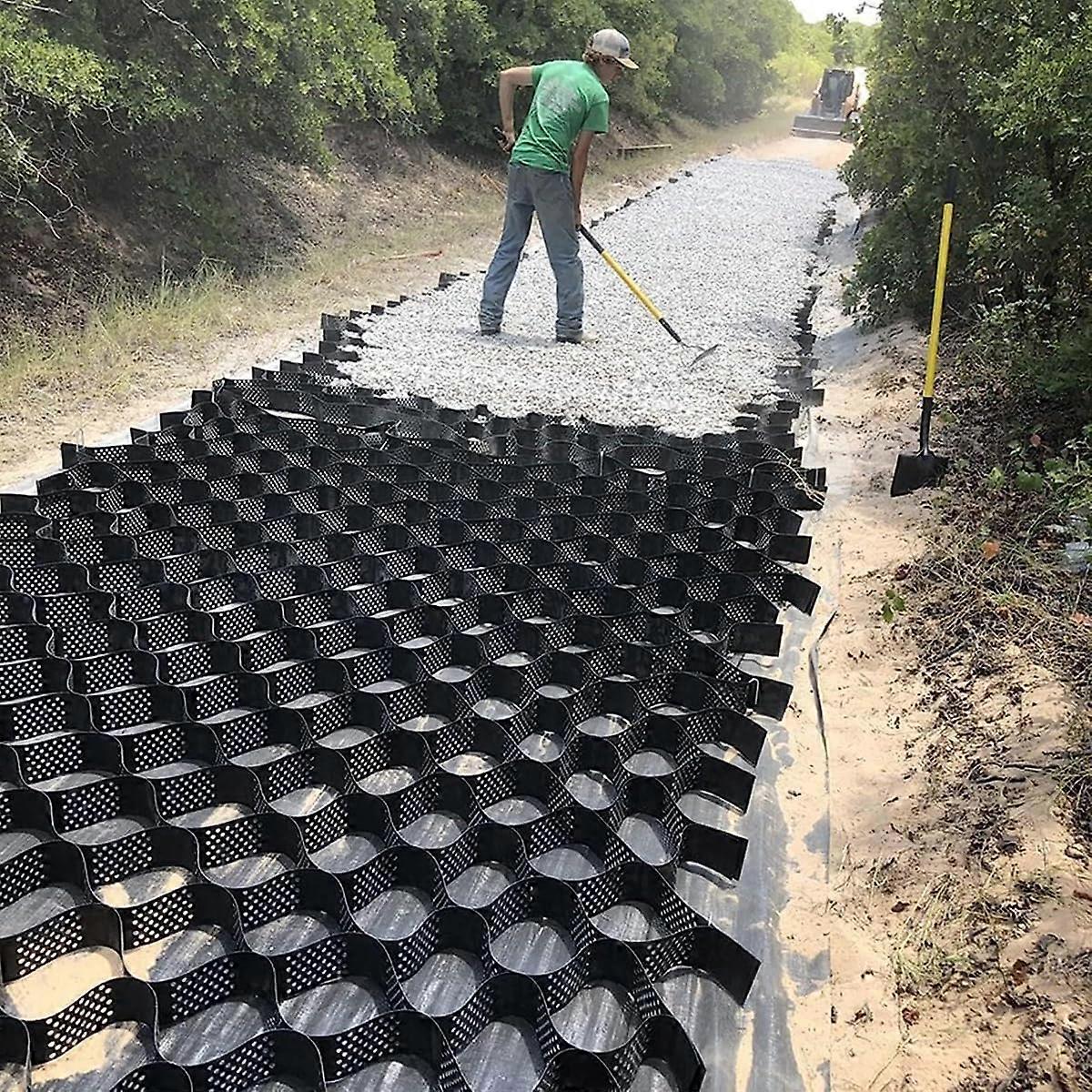 Durable HDPE Construction Crafted from quality, ecofriendly HDPE material, this ground grid offers an exceptional balance of strength and resilience. It is lightweight yet resistant to abrasion, chemical exposure, and photooxidation. Built to withstand both acidic and alkaline conditions, this grid performs reliably in diverse environments including gardens, slopes, sandy terrains, and desert soils. LoadBearing Performance Once filled, each square meter of the grid delivers a tensile strength of up to 1800 pounds, effectively distributing loads to reinforce roadbeds and stabilize surfaces. The ultrasonic welding technology ensures each paver section remains intact under heavy weight, preventing sinking or surface deformation. Practical Size and Easy Handling Fully expanded, a single grid cell measures 40 cm x 40 cm (15.7 in x 15.7 in) with a height of 5 cm (2 in). Designed for convenience, the geo grid can be expanded or folded as needed for quick installation or compact storage. Sections can be easily cut to size or connected together for larger coverage areas, offering flexibility for projects of various scales. Versatile Applications This gravel grid is ideal for both flat surfaces and inclined terrains, delivering reliable ground reinforcement and erosion control in multiple scenarios: Creating stable, lowmaintenance driveways that resist rutting and sinking. Reinforcing garden paths and landscaped areas for improved durability and appearance. Providing firm footing for parking spaces, patios, horse paddocks, and farm structures. Whether used in landscaping, construction, or agricultural settings, this HDPE ground grid offers a dependable solution for enhancing surface strength, preserving soil stability, and improving longterm performance across a wide range of outdoor projects.