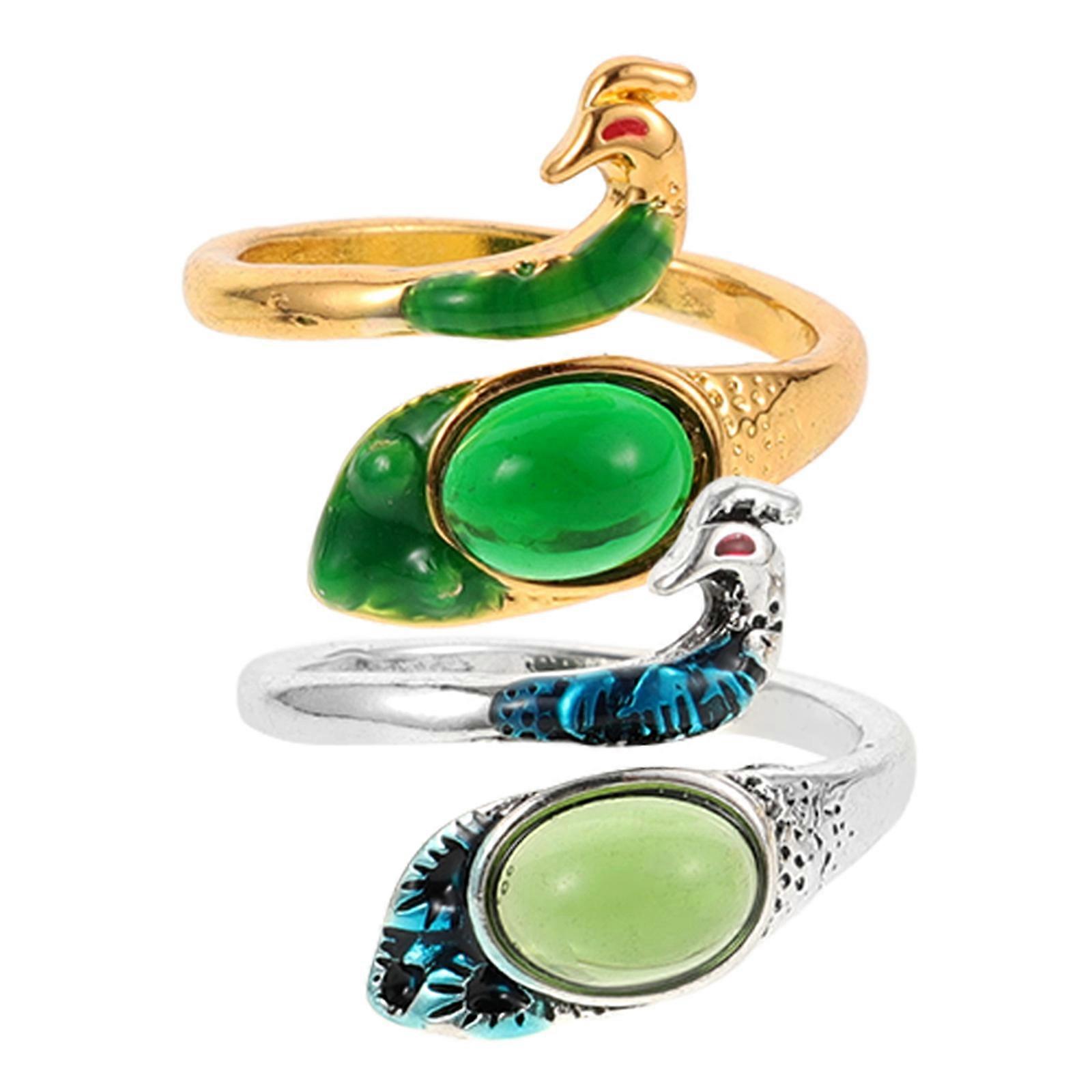 Peacock Ring Alloy Knitting Crochet Rings for Decoration 2Pcs Adjustable Finger Rings