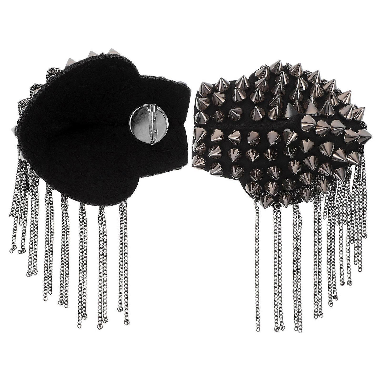 Black Spiked Epaulette with Tassel for Costume 1Pair
