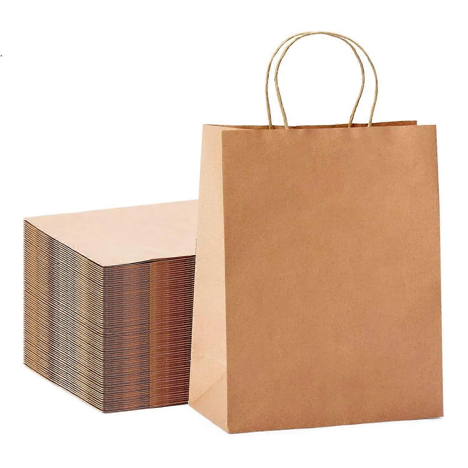 Large Kraft Paper Bags with Reinforced Flat Handles 13x7x17 for Shopping Retail and Food Service 20pcs