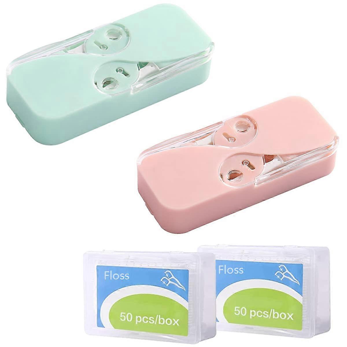 Portable Floss Dispenser Automatic Dental Floss Pick Holder Travel Organizer Case Hygienic Storage Green Pink