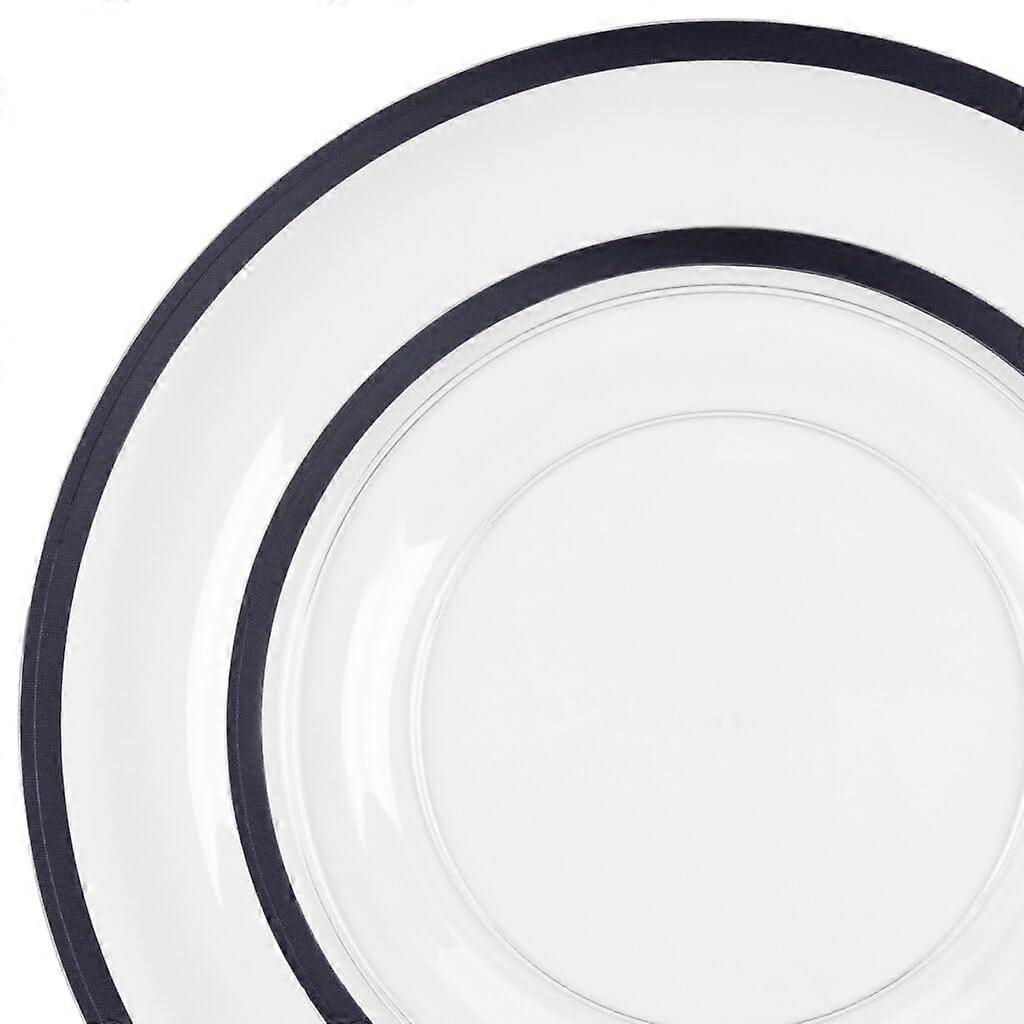 Disposable Clear Plastic Dinner Plates and 7 Inch Salad Plates Set, Heavy Duty with Elegant Black Rim, Pack of 64