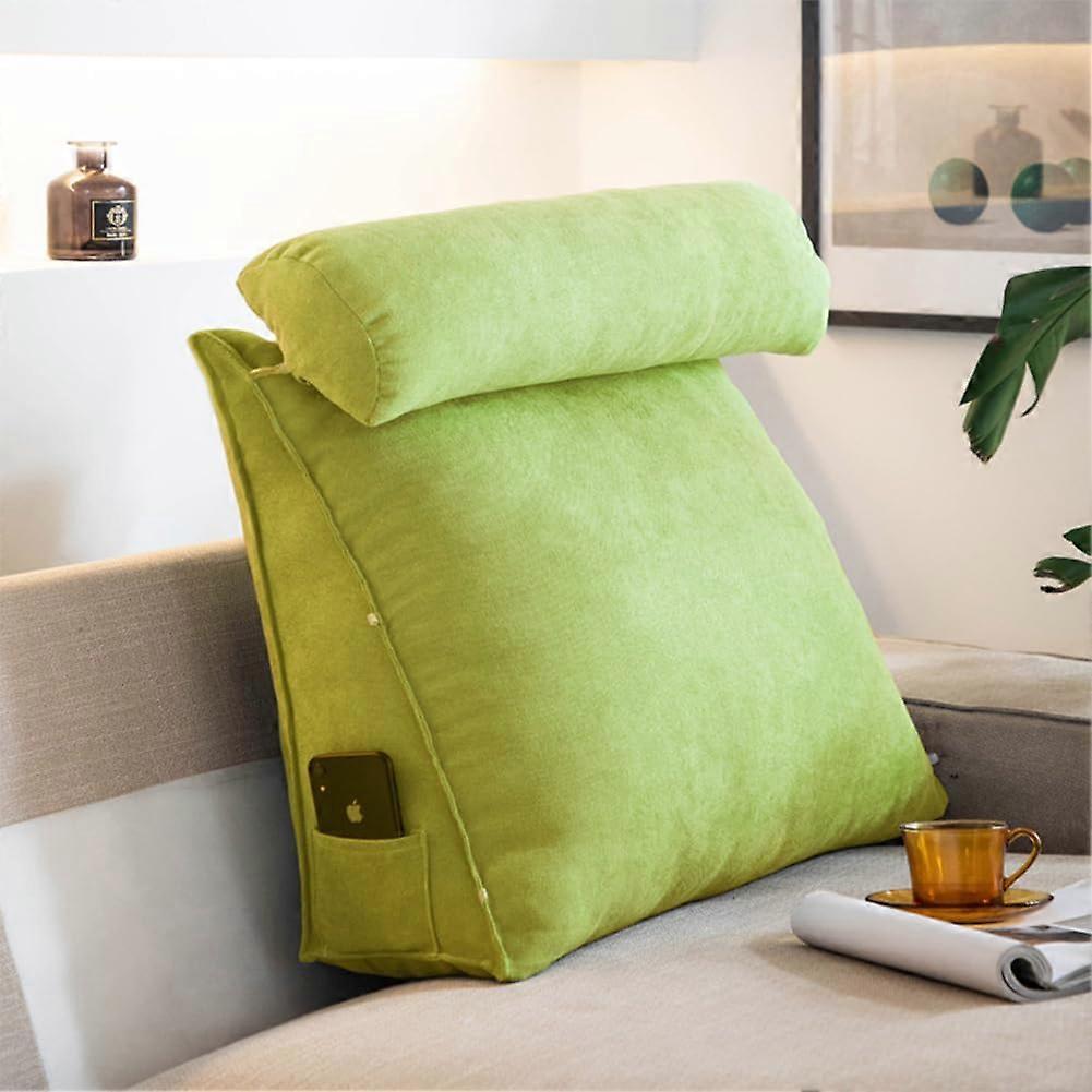 Bed Reading Pillow Large Triangle Backrest Cushion with Ergonomic Support and Washable Cover, Green