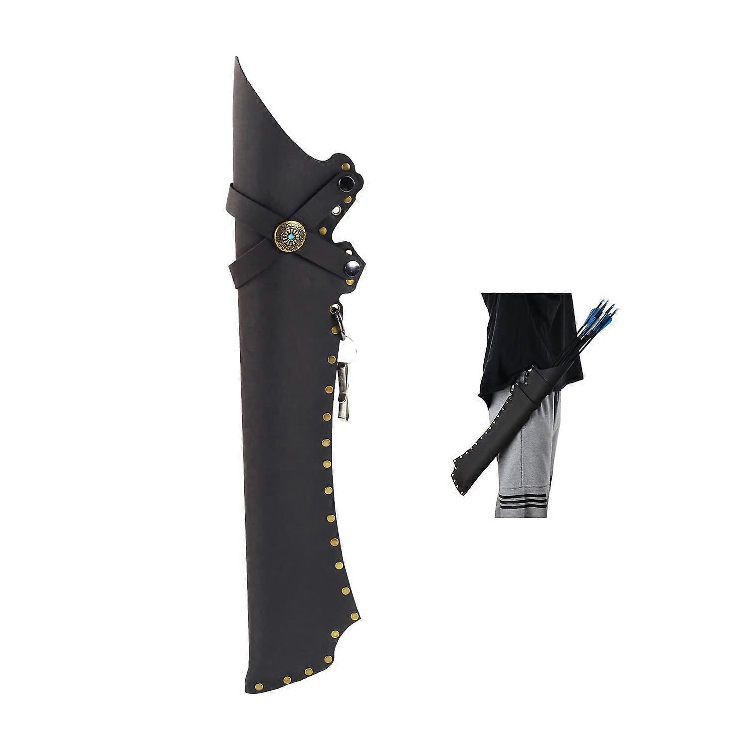 Archery Quiver PU Leather Back Holder with Belt Clip Large Capacity for Field and Practice Black