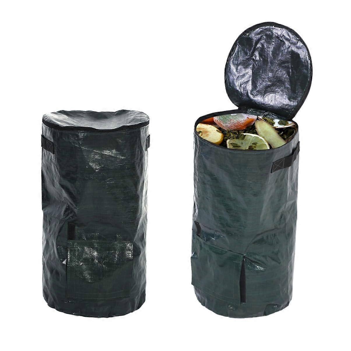 2PCS Outdoor Compost Bin Bags with Zipper Lid, Durable PE Cloth and Handles for Garden Yard 35x60