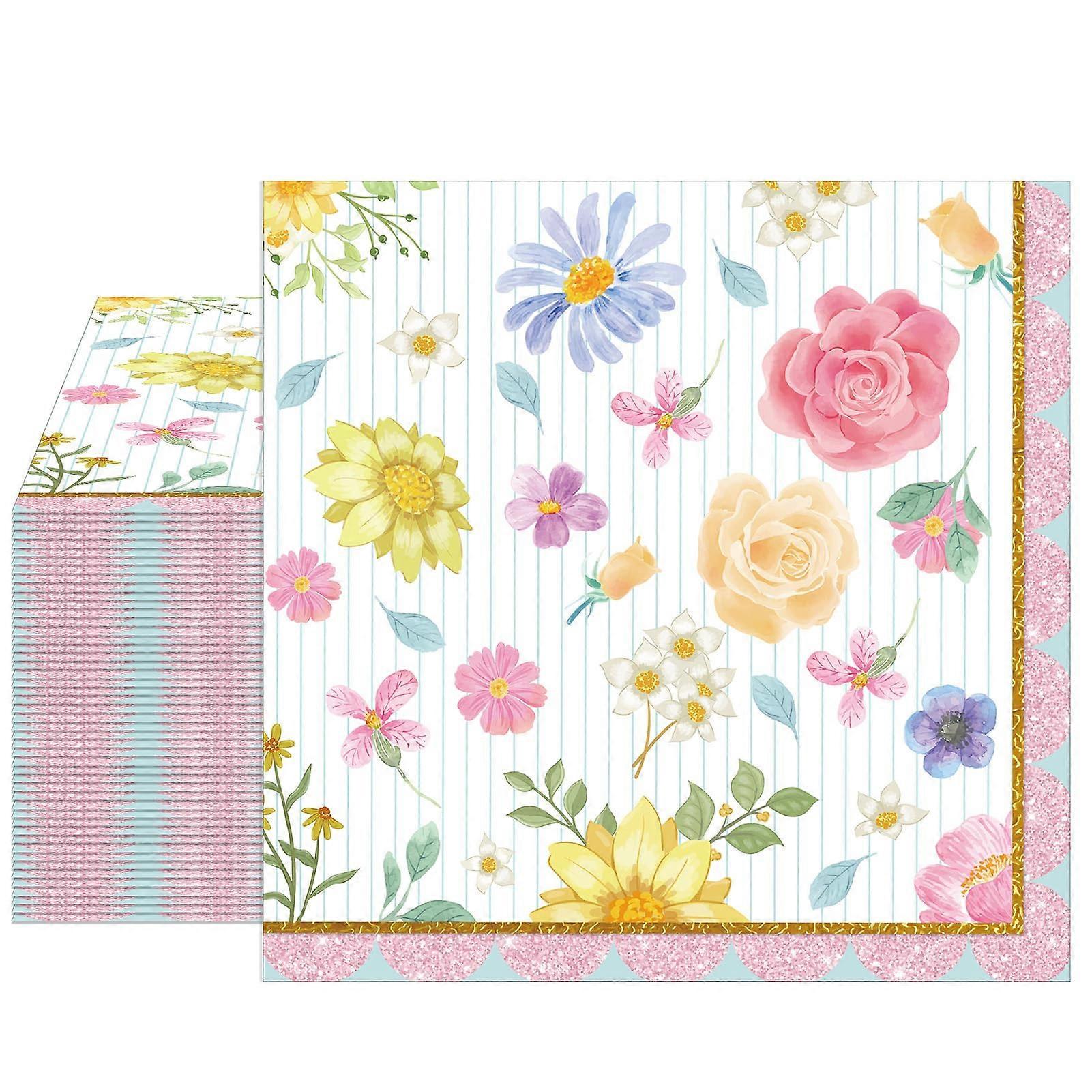 Decorative Cocktail Napkins Floral Paper 2Ply Disposable for Spring Bridal Shower Garden Party
