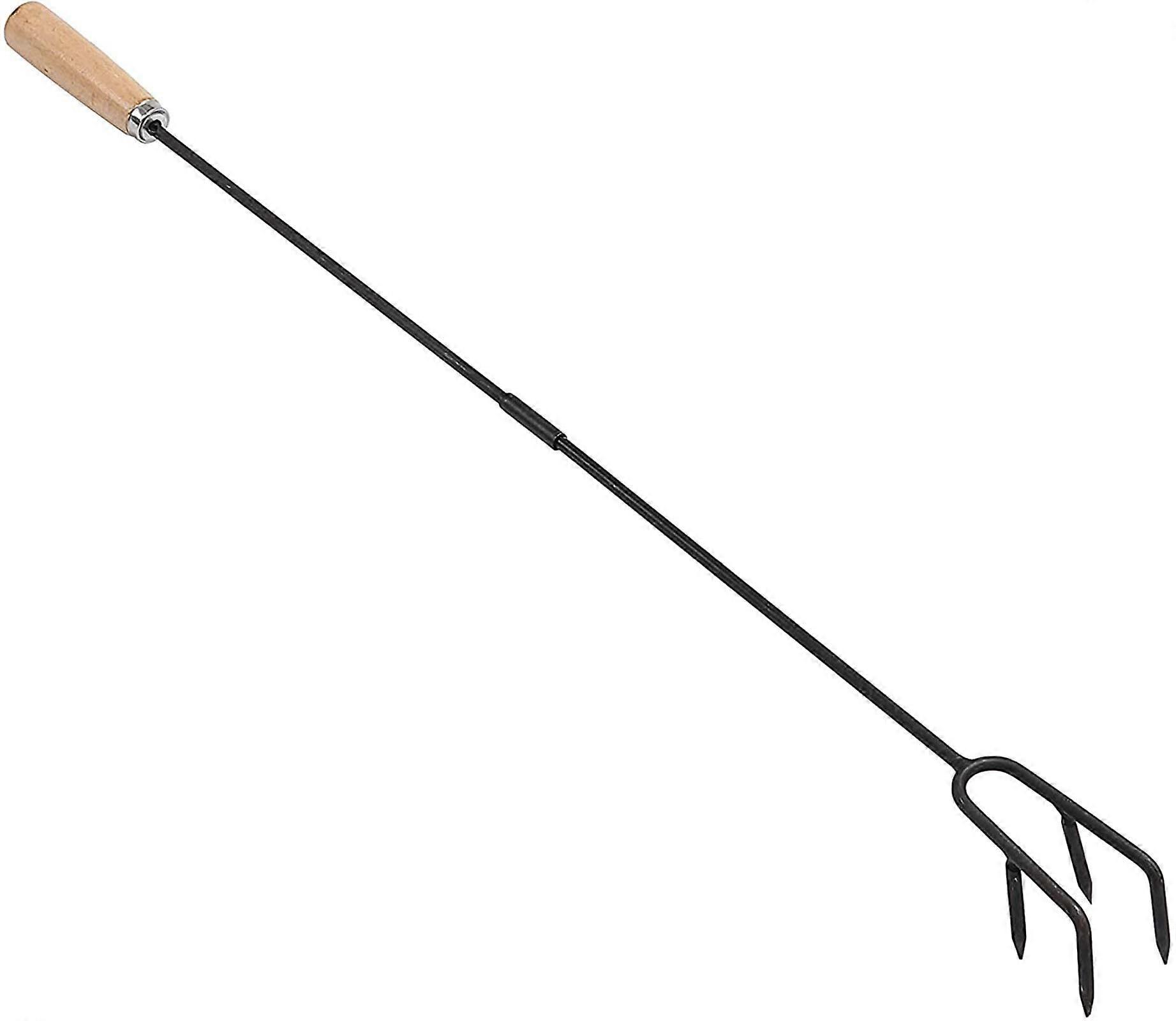 32 Inch Fire Pit Poker with Wooden Handle, Durable Steel Fireplace Tool for Indoor and Outdoor Use