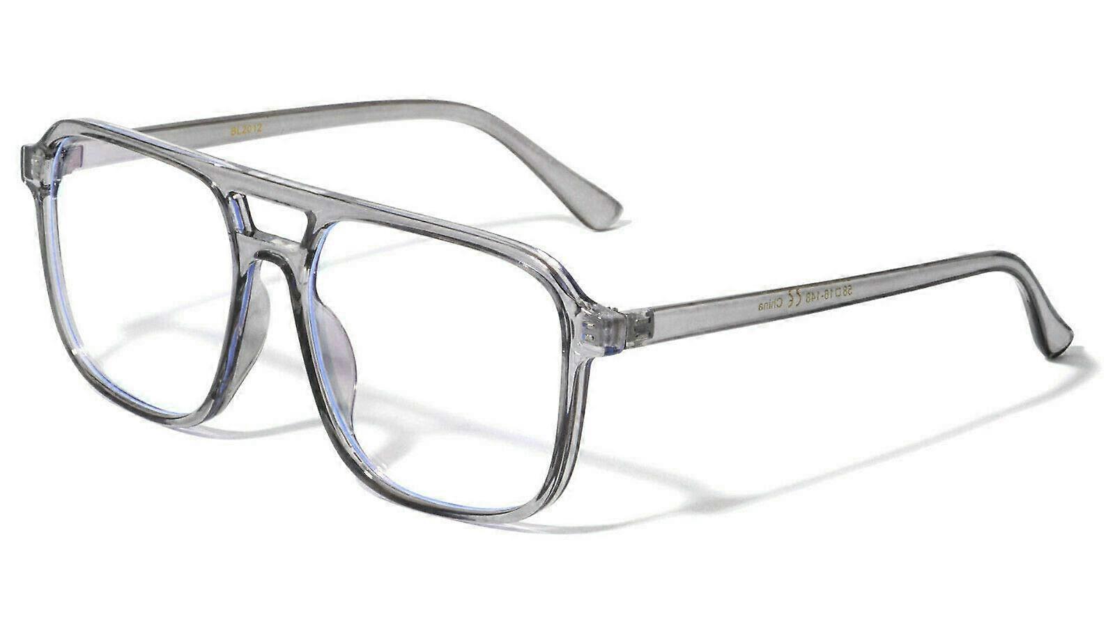Oversized Square Aviator Blue Light Blocking Filter Lenses Computer Anti Fatigue Glasses Model BL2012 Quick overview These oversized square aviator glasses combine wide coverage with clear blue light filtering lenses. The transparent grey frame and clear lenses provide a neutral look that works for office, home, and leisure screen use. One size fits most. Why choose these glasses Blue light filtering lenses: Lenses incorporate a blue light filter designed to limit a portion of short wavelength visible light from digital screens and other LED sources. Broad coverage design: Oversized square aviator shape increases coverage of the eye area compared with smaller frames, helping to reduce distracting reflections and direct screen glare. Clear lenses for natural color: Clear lenses preserve true color perception while providing filtering, suitable for tasks that require accurate color and detail. Versatile fit: One size fits most frames accommodate a wide range of face shapes and are easy to wear over long sessions. Discreet style: Transparent grey frame offers a modern, low profile appearance that fits professional and casual settings. Key features and specifications Model: BL2012 Frame style: Oversized square aviator Frame color: Transparent grey Lens type: Clear blue light filtering lenses Size: One size fits most Intended use: Computer and digital screen use, reading, and general indoor activities involving LED displays Practical applications Office and remote work: Wear during long workdays at a computer to reduce exposure to energy visible light from monitors, laptops, and desk lighting. Study and reading: Use while studying, reading on tablets, or reviewing documents on screens to maintain consistent visual clarity. Gaming and streaming: Suitable for casual and extended gaming or media viewing sessions where screen time is prolonged. Fit and care tips Adjust temples for a comfortable, secure fit. The one size design fits most head shapes. Clean lenses with a soft microfiber cloth and mild lens cleaner to avoid scratches and maintain clarity. Store in a protective case when not in use to preserve frame shape and lens condition. What makes these glasses stand out Combination of oversized aviator coverage and clear blue light filtering lenses provides functional protection without altering color perception. Neutral transparent grey frame that works in professional and casual environments. Simple, one size design for straightforward everyday use. Model BL2012 offers a practical option for anyone seeking clearlens blue light filtering eyewear with roomy coverage and a neutral frame.