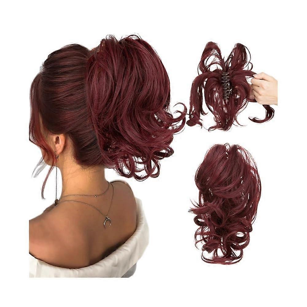 Red Curly Hair Bun for Women, Adjustable Clip In Ponytail Extension with Voluminous Curls