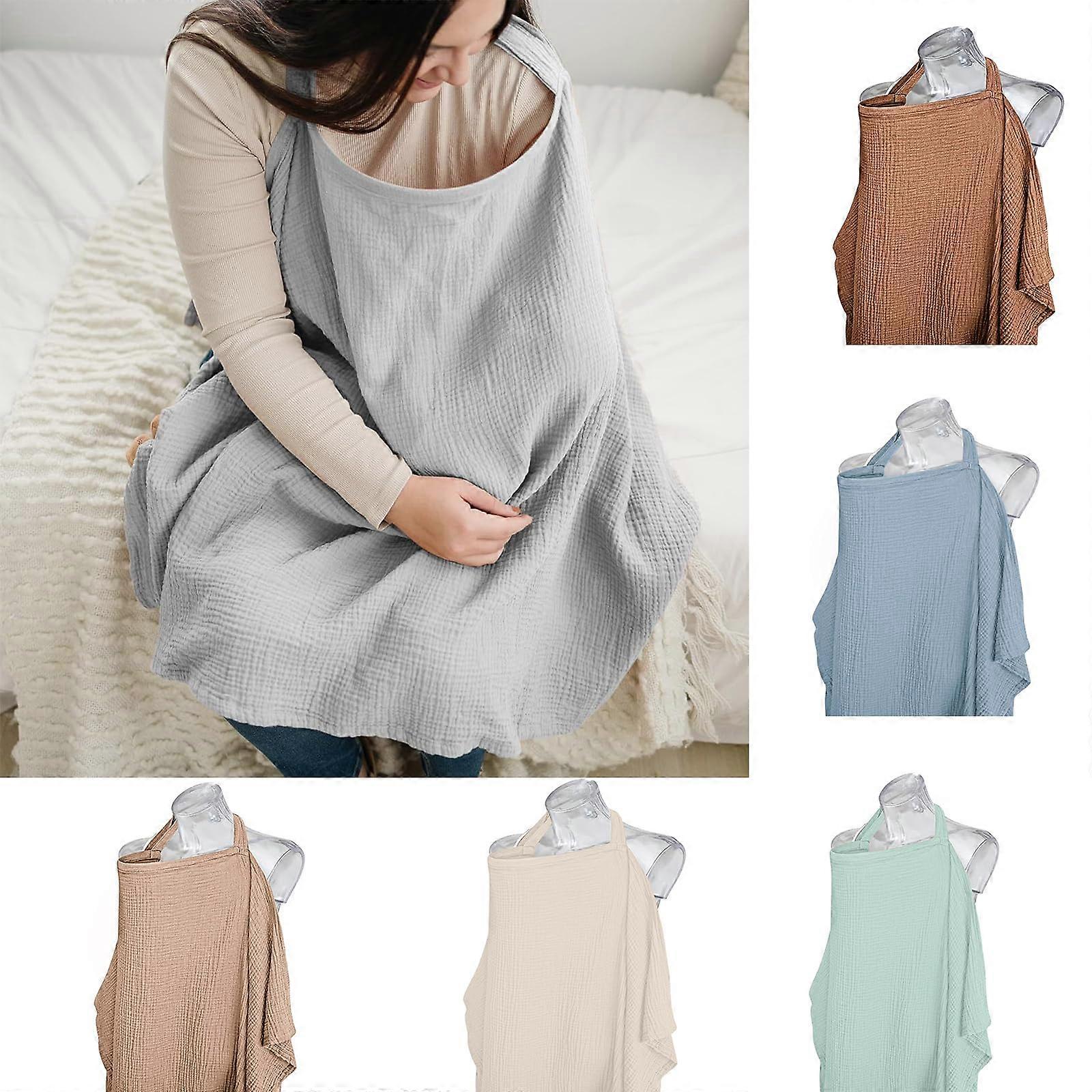 Breathable Muslin Nursing Cover with Rigid Hoop, MultiUse Breastfeeding Apron Canopy Grey