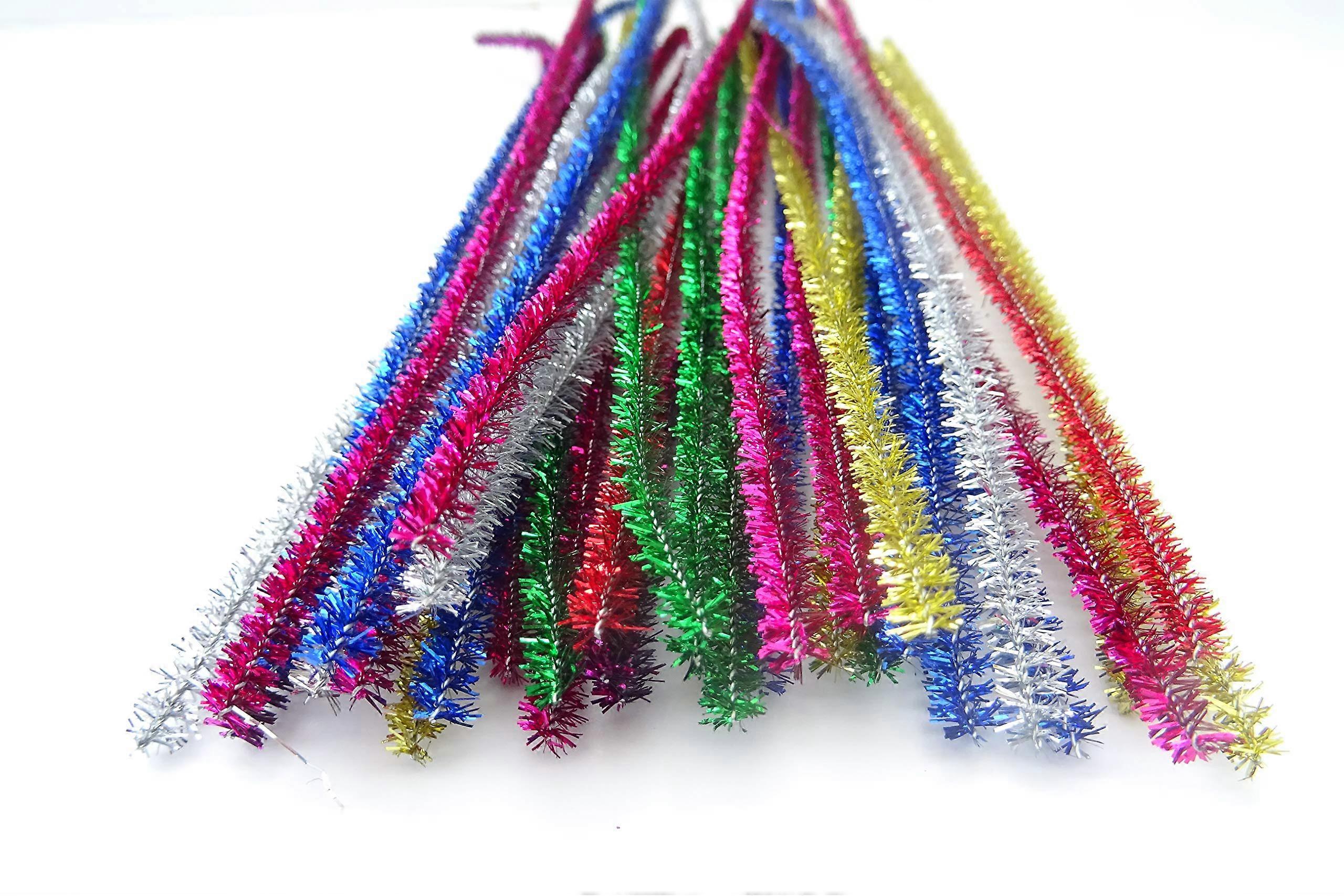 100pcs Glitter Tinsel Pipe Cleaners 30cm Flexible Craft Stems for DIY Arts and Crafts