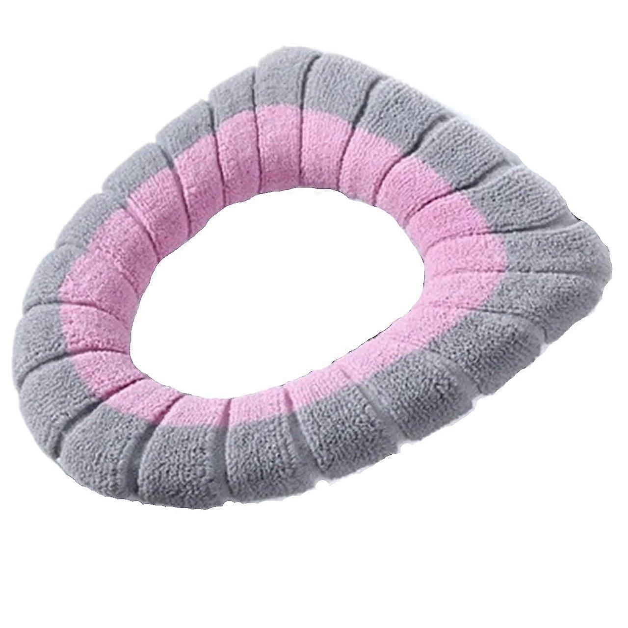 2Pcs Soft Toilet Seat Cover Cushion Washable Warm Padding Stretch Fit for Bathroom (Pink Gray)