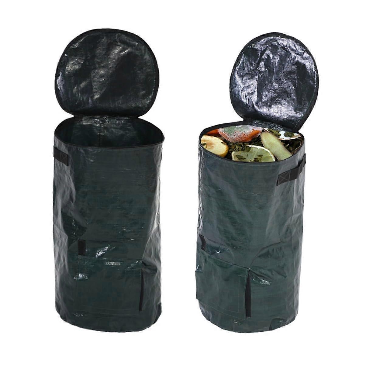 2PCS Compost Bin Bags with Zipper Lid, Large Capacity Reusable Garden Waste Bags with Handles