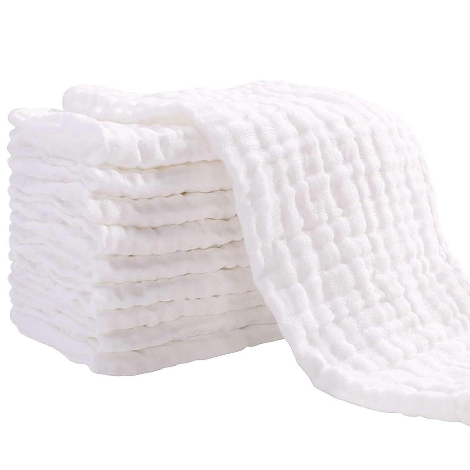 Muslin Burp Cloths for Baby Soft Cotton Washcloths Gentle Skin Protection Unisex White