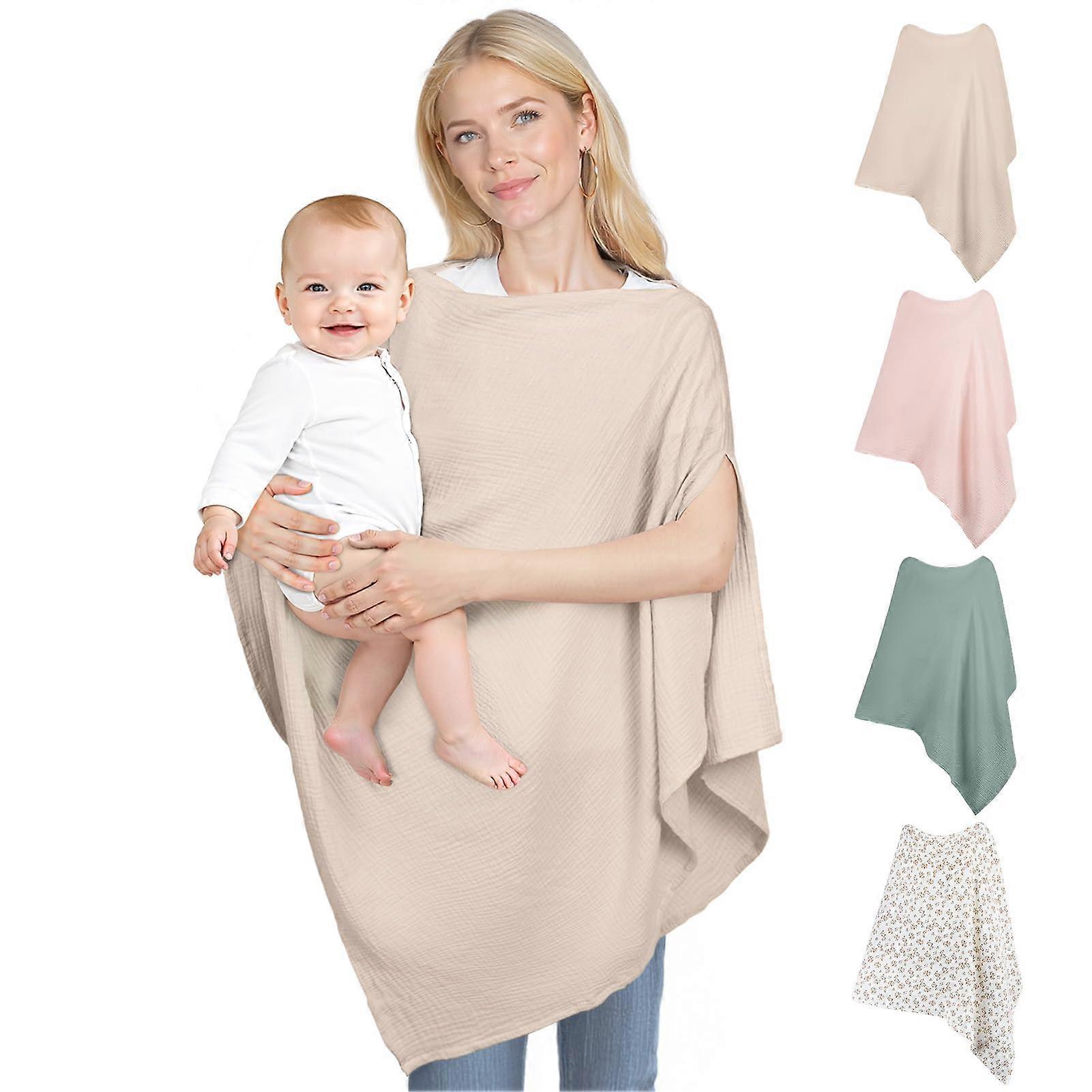 Breastfeeding Cover Muslin Cotton Nursing Cover Soft Breathable Fabric Full Privacy Light Brown
