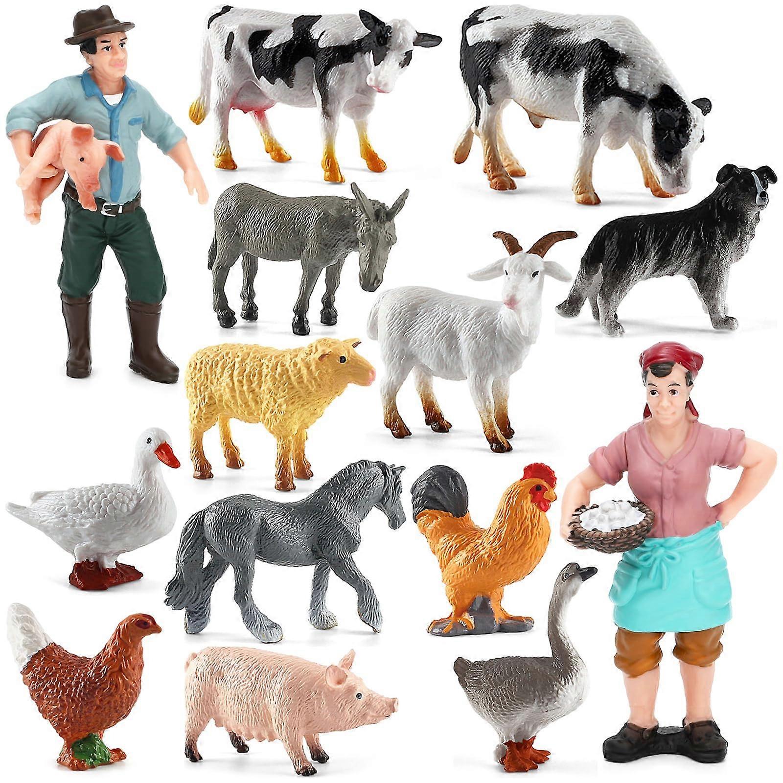 14Piece Farmer Playset Mini Farm Animals and Figurines Overview A compact, detailed farm playset featuring 12 mini farm animals and 2 farmer figurines. Each piece is made from durable PVC with hand painted details and vivid colors as pictured. Lightweight and collectible, this set is suitable for play, display, and educational activities. Key benefits Vivid detail and quality finish: Hand painted figures with realistic textures and expressive faces create a lifelike appearance that enhances play and display. Durable materials: Made of PVC for solid, longlasting figures that hold their shape during regular use. Compact and portable: Small animal figures range from 1 inch to 3 inch in length, and farmer figurines measure about 4 inch, making the set easy to store, transport, or use in small displays. Versatile use: Works well for imaginative play, classroom activities, dioramas, and decorative displays. Specifications Material: PVC Color: as pictured Product weight: 3 ounces Animal sizes: approximately 1 inch to 3 inch in length Farmer figurine size: approximately 4 inch Package includes 12 plastic mini farm animals 2 farm people figurines Total: 14 pieces in 14 different styles Design details Realistic shapes and textured molding combine with hand painted finishes to highlight features and facial expressions. Solid construction makes the figures suitable for handson play and repeated handling. A variety of animal types and two human figures provide mixed scenes and storytelling options. Suggested uses Educational play and storytelling: Use for counting, sorting, role play, and creating farm scenes to support classroom lessons or home learning activities. Decorative displays and dioramas: Add to shelves, bookcases, model farms, or miniature scenes for visual interest. Party favors and craft projects: Suitable for party goodie bags, table decorations, or creative craft applications. Care and maintenance Wipe clean with a damp cloth. Avoid exposure to extreme heat or prolonged sunlight to preserve paint and shape. Contents and sizing match the images shown.