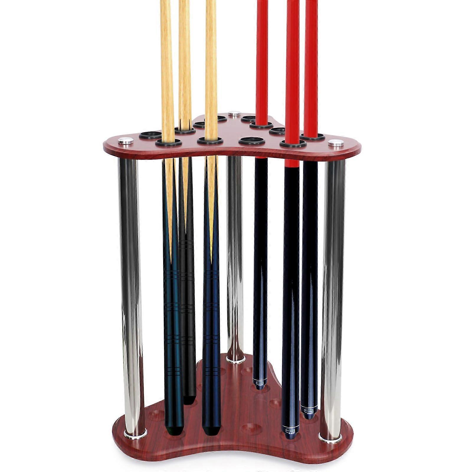 Solid Wood Pool Cue Rack Floor Stand, Wine Red Billiard Cue Holder for Cue Organization