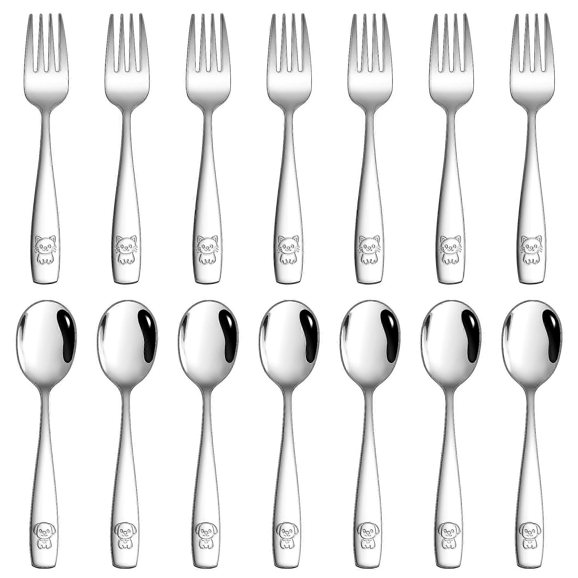 Toddler Utensils Kids Silverware Set, 14pcs Stainless Steel Forks and Spoons, Dishwasher Safe