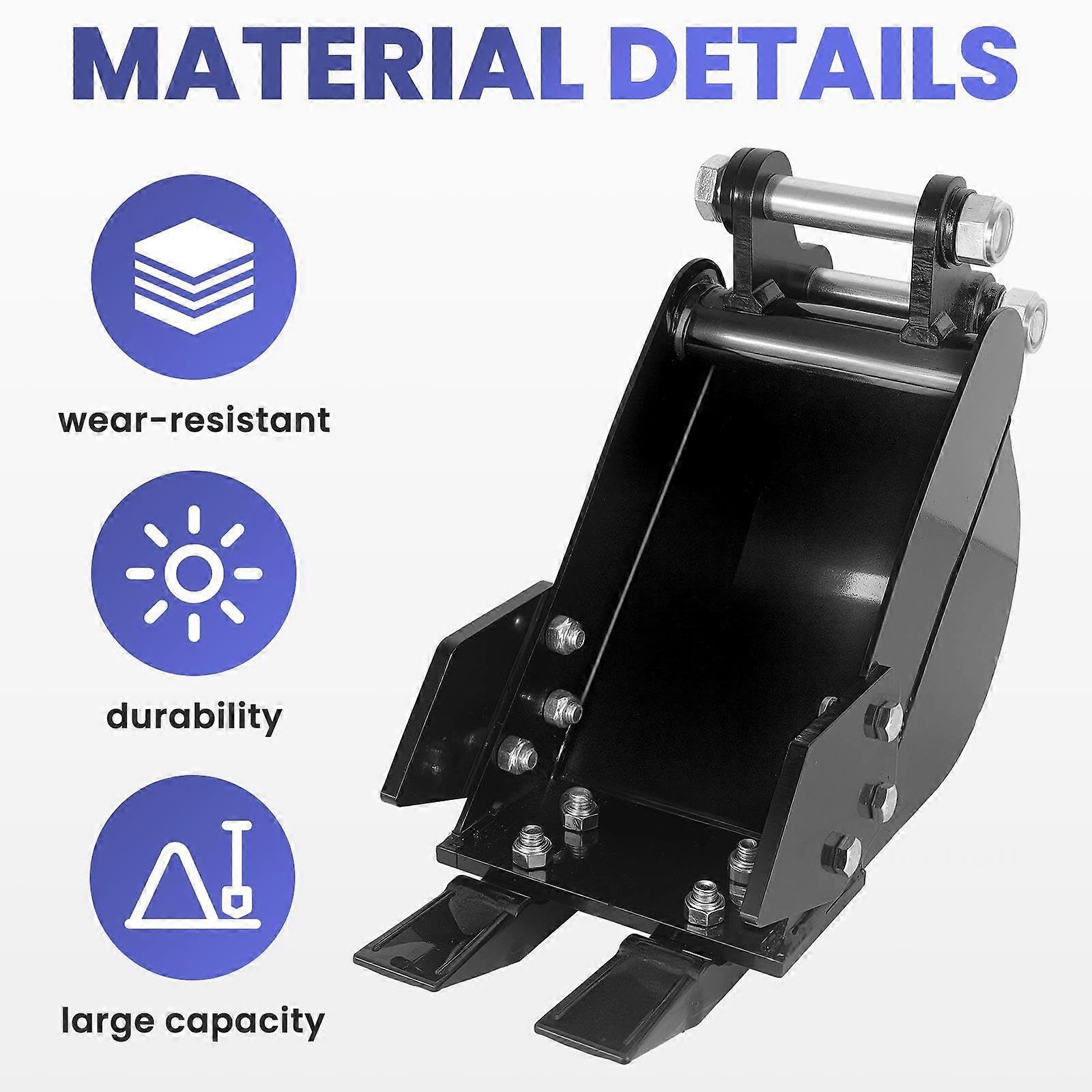 Mini Excavator Bucket 8.2in 210mm Trenching Attachment with 2 Replaceable Metal Teeth for 3 Ton