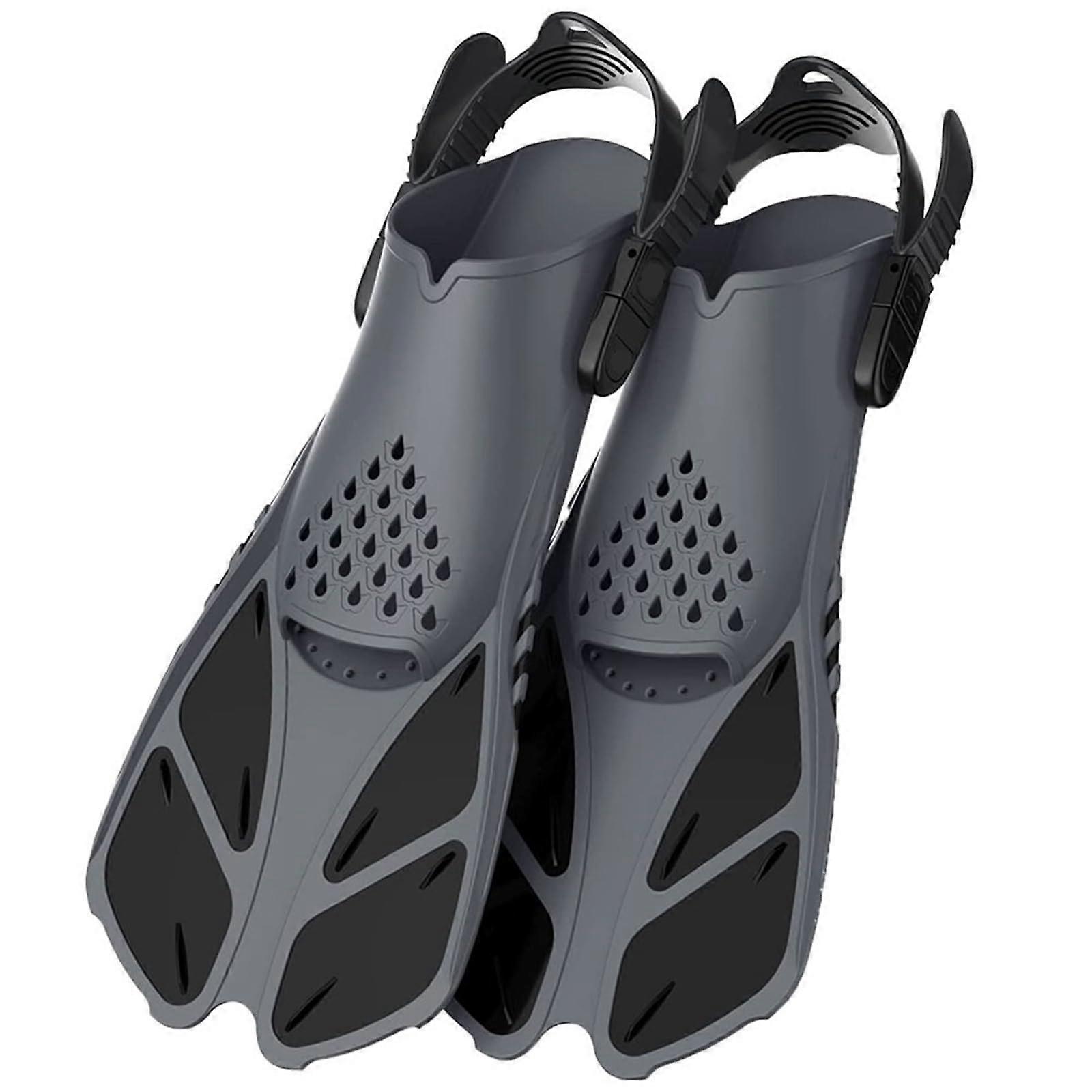 Swim Fins Snorkel Fins with Adjustable Buckles, Short Silicone Open Heel for Adults L/XL Black