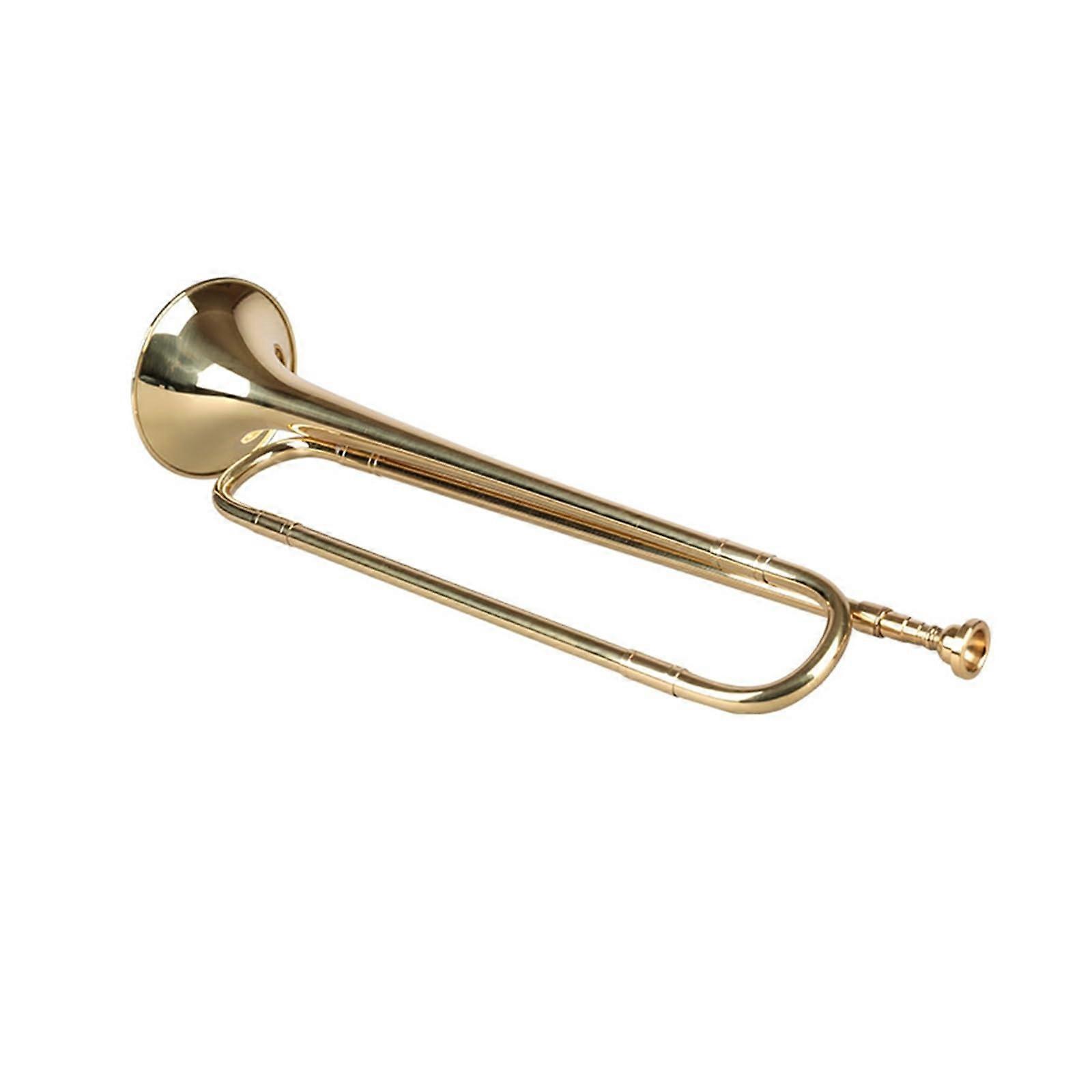 Goldplated Bflat trumpet designed for students and marching ensembles. Brass construction delivers a focused tone and dependable tuning for lessons, rehearsals, and performances. The Pioneers Charge Horn style model combines a classic look with studentfriendly playability. Key benefits Clear learning path: Bflat tuning and predictable response help beginners develop pitch control and articulation more quickly. Durable finish: Goldplated surface resists wear from regular use and maintains a professional appearance for rehearsals and performances. Band and marching ready: Projection and tonal clarity make the instrument suitable for school bands, drum and bugle teams, and outdoor marching settings. Easy compatibility: Works with standard Bflat trumpet mouthpieces and common trumpet accessories for straightforward setup and upgrades. Simple maintenance: Brass construction is easy to clean and service with routine valve oiling and gentle polishing. Important attributes Function: Bflat trumpet for melodic and ensemble playing Compatibility: Standard Bflat trumpet mouthpieces and accessories Material: Brass body with goldplated finish Intended user: Students and marching ensemble members Performance: Designed for clear projection, stable intonation, and reliable articulation in practice and performance settings Practical use scenarios School band practice and solo lessons: Reliable intonation and comfortable playability support steady progress during daily rehearsals and student recitals. Drum and bugle team or marching band: Strong projection and a bright tonal character help the trumpet cut through ensemble textures during outdoor performances. Community concerts and ceremonies: Professional appearance and dependable sound make the instrument suitable for parades, civic events, and small ensemble work. Who this is for Students beginning trumpet study, music teachers equipping classroom sets, and marching ensemble leaders seeking a goldplated Bflat option that balances durability and musical performance. Care and setup tips Use standard valve oil and a soft polishing cloth to maintain the finish. Test a variety of standard Bflat mouthpieces to find the most comfortable response for the player. Regular valve and slide maintenance will preserve intonation and playability over time.
