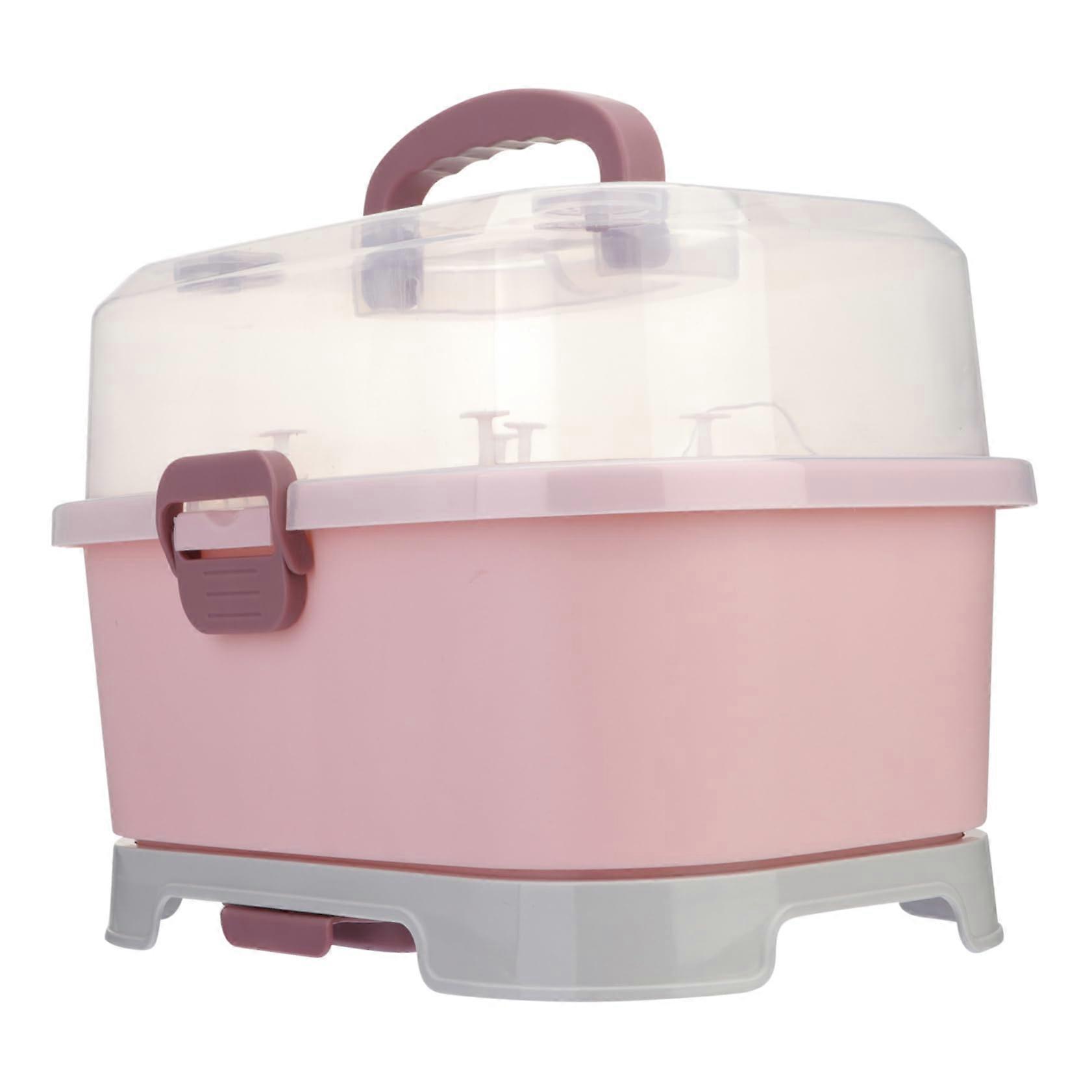Baby Bottle Drying Rack with Storage Box, Pink Breast Milk Container, Large Capacity Organizer