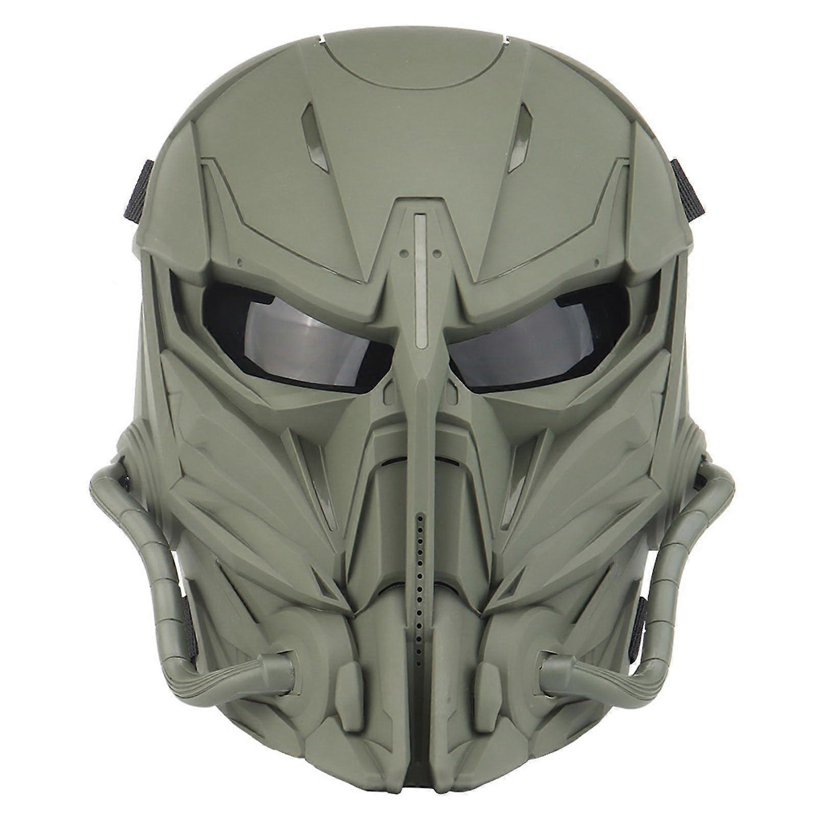Airsoft Face Mask Green Cyberpunk Samurai Full Face Tactical Paintball Mask with Adjustable Fit