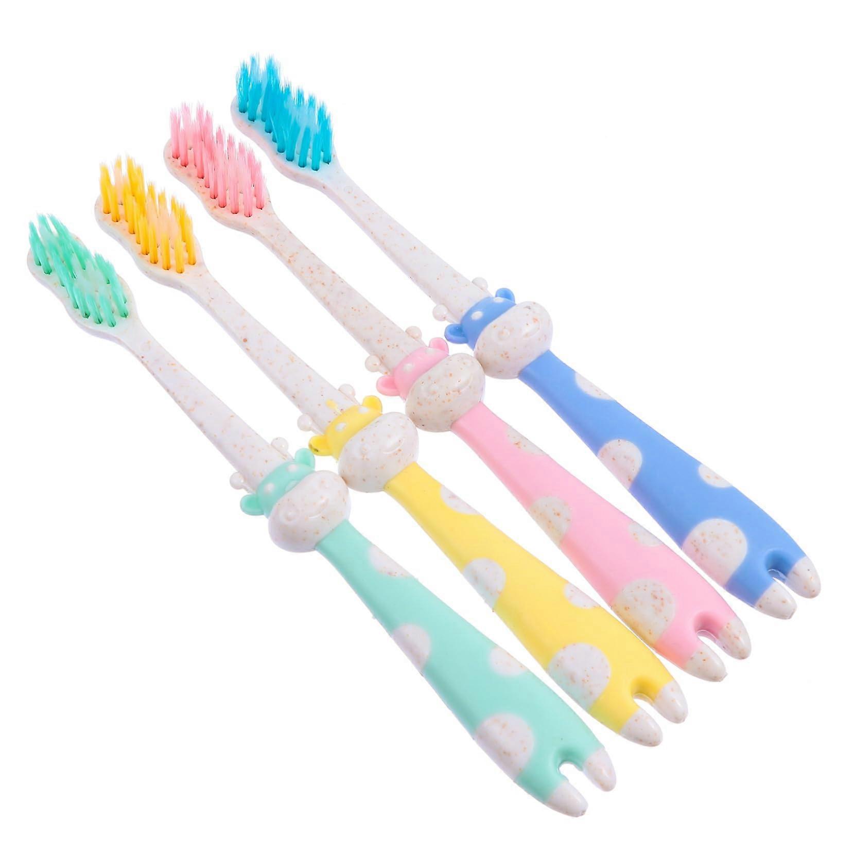 Baby Toothbrush with Soft Bristles, Cartoon Handle, Detachable Head, Protective Guard, 4pcs Set