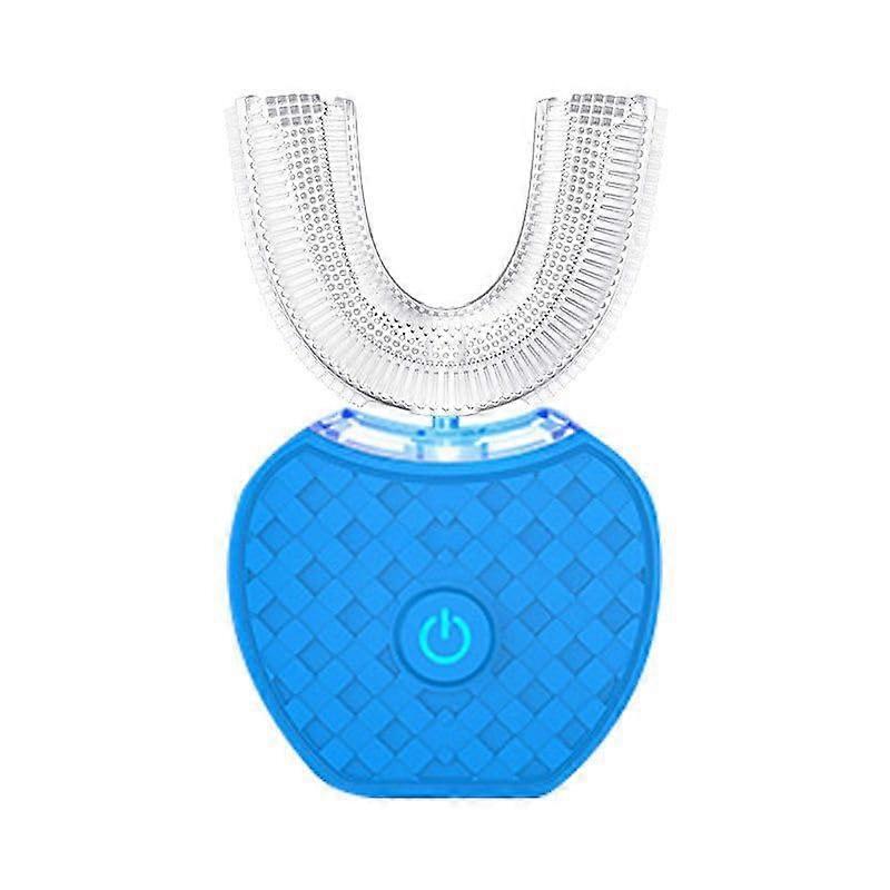 Electric UShaped Toothbrush for Adults with Soft Silicone Bristles, IPX7 Waterproof, Blue