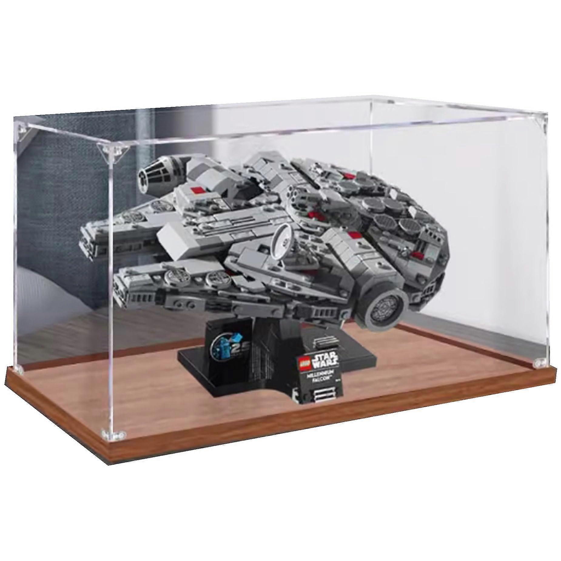 Acrylic Display Case Compatible with 75375 Millennium Falcon, Dustproof Transparent Wood Color Box