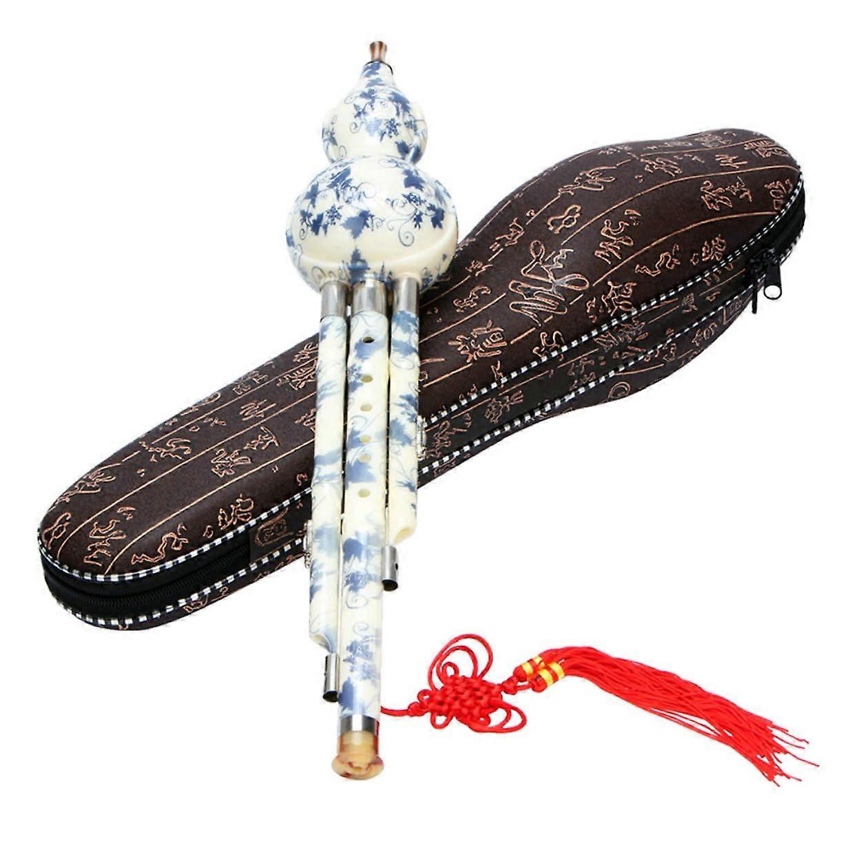 Chinese Gourd Flute with Blue and White Porcelain Hulusi Key of B Flat for Beginners Authentic Tone