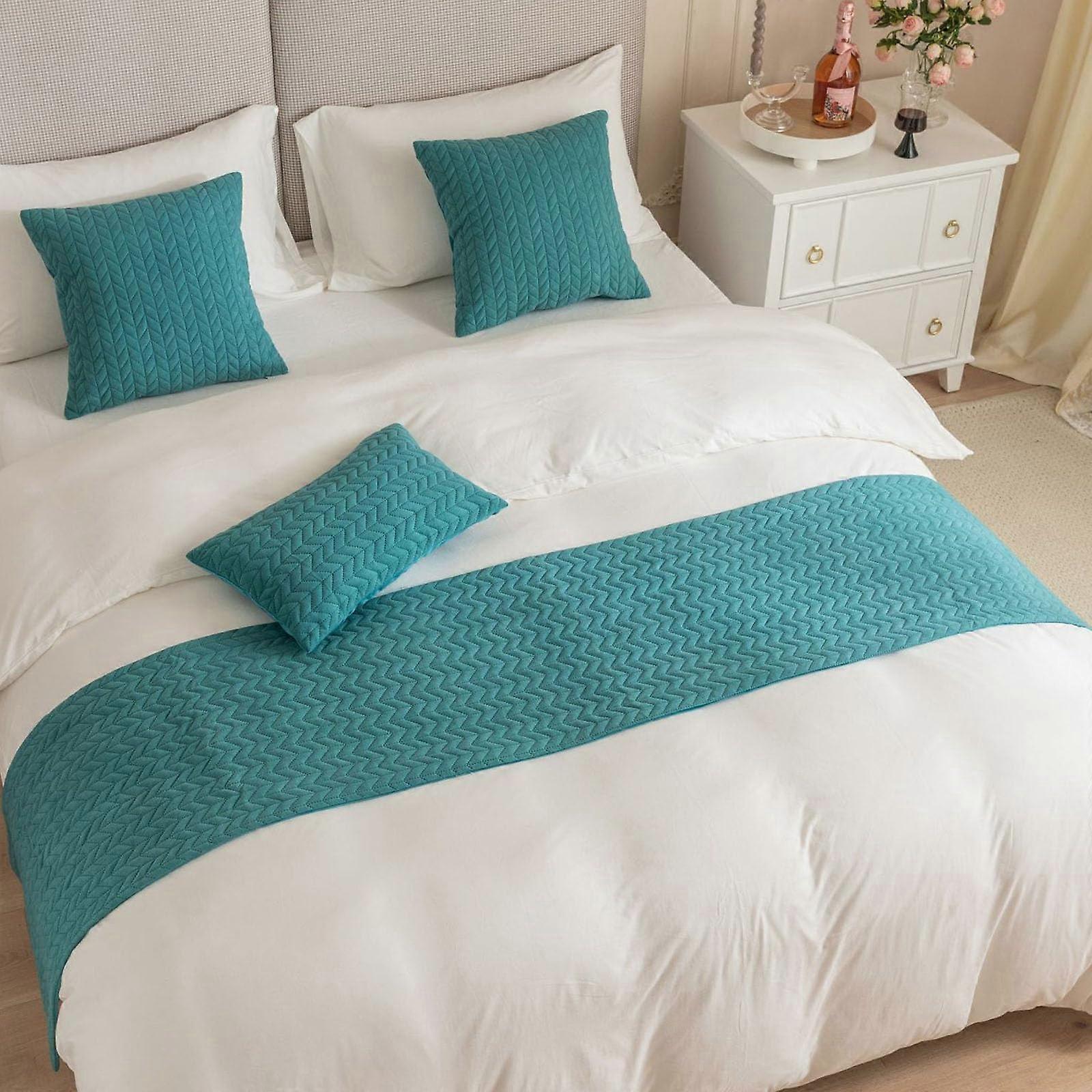 Blue King Size Bed Runner 17.7 x 95 in Decorative Bed Scarf with Solid Accent for Bedroom Decor