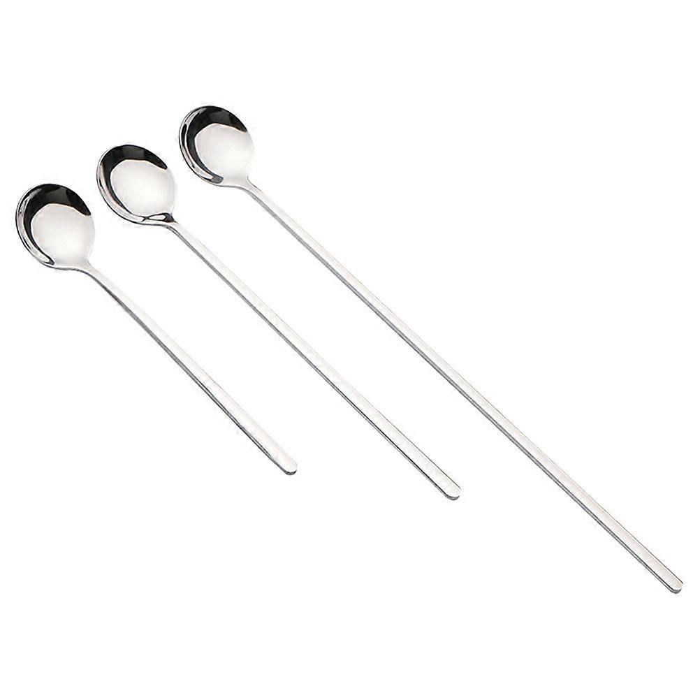 Long Handle Stainless Steel Coffee Spoons for Dessert Serving 3Pcs Silver