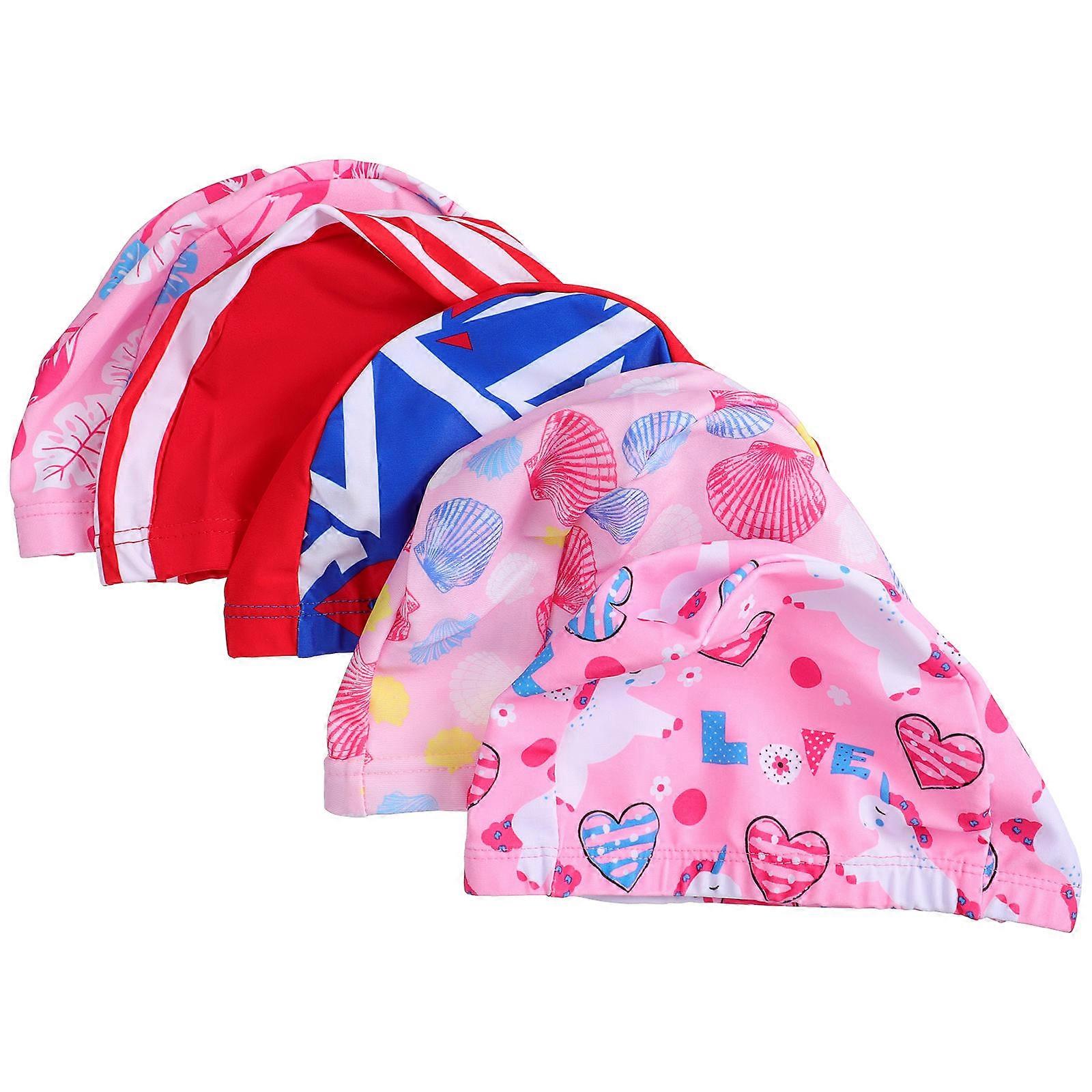 Waterproof Swimming Cap Children Swim Hat for Swimming Use 5Pcs Polyester