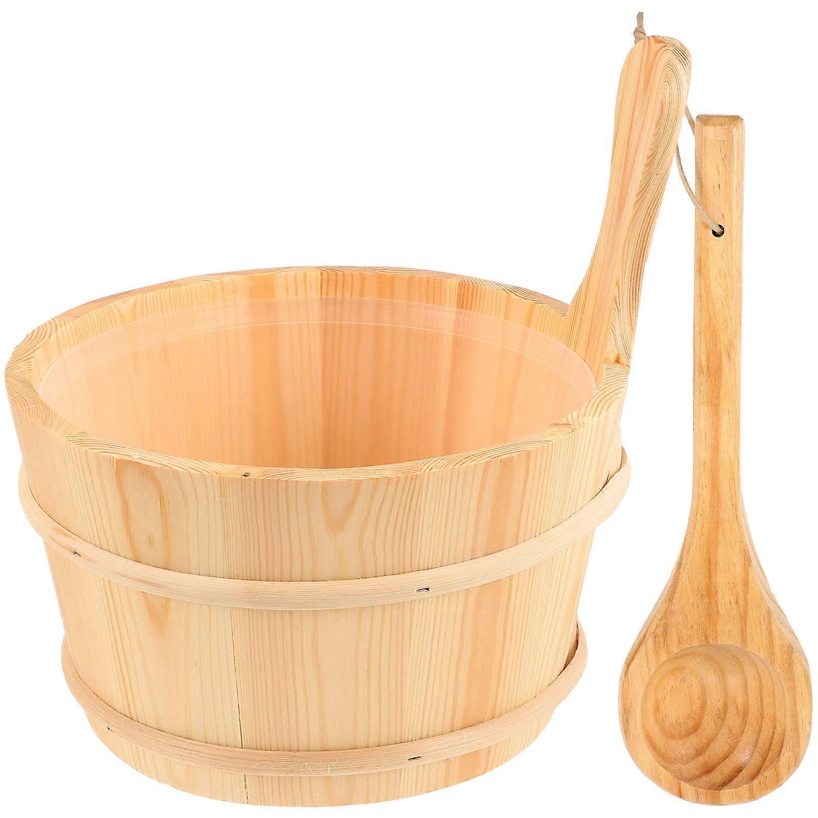 Sauna Bucket Wooden Bucket for Sauna Scoop 1Set with Wood Spoon